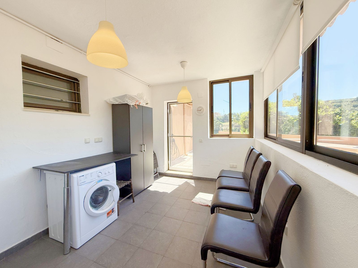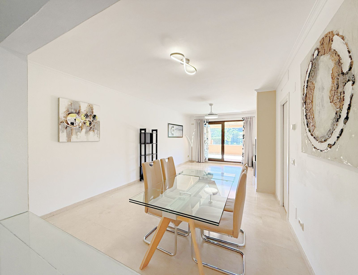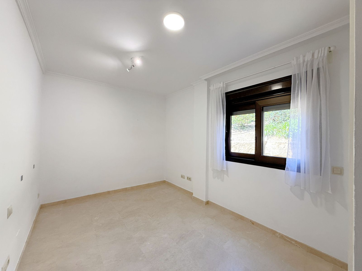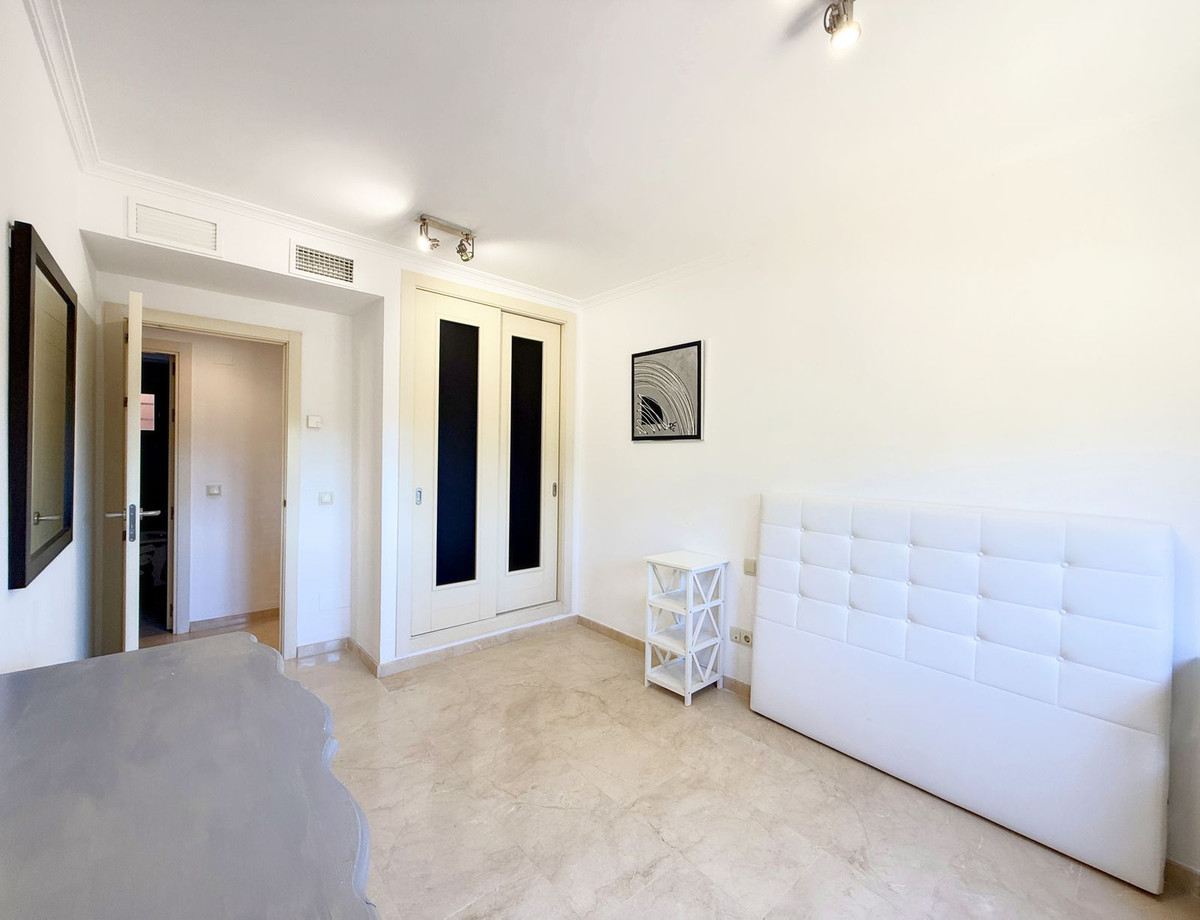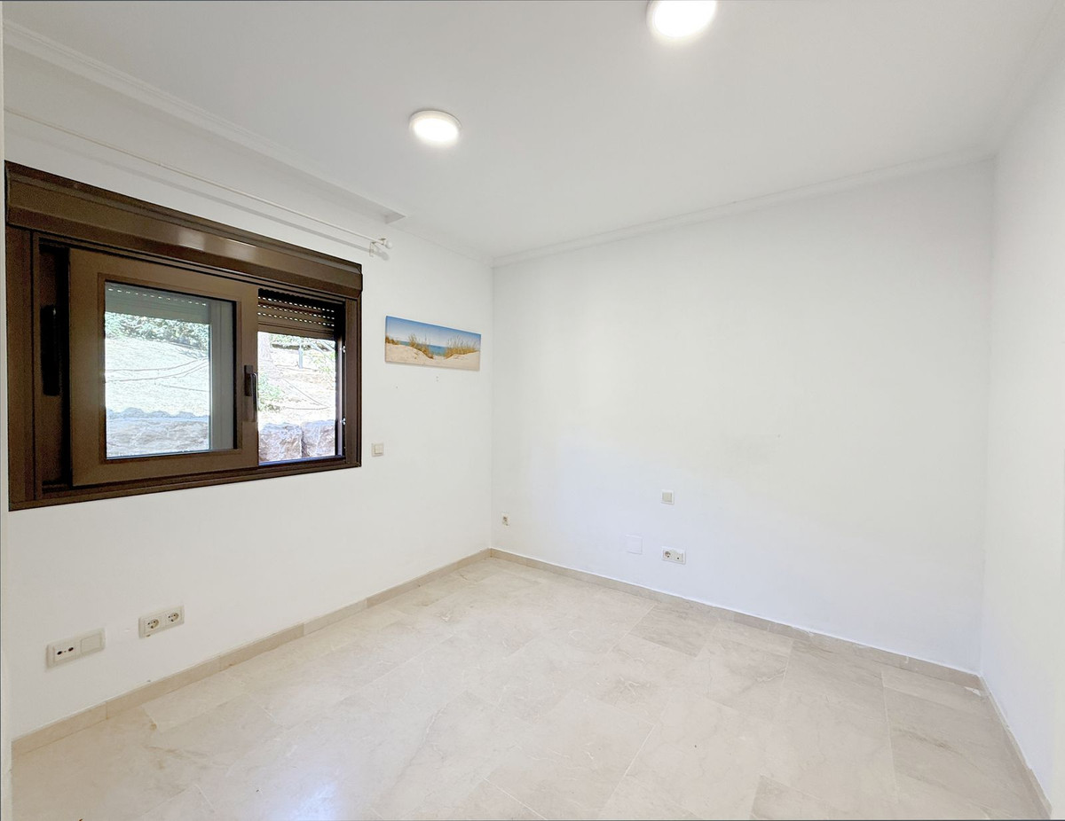 The property, all on one level, is spacious, bright, and extremely comfortable. It features four bedrooms and two bathrooms, a large living room with direct access to the terrace and private garden, from where you can enjoy spectacular views of the golf course and the sea. Thanks to its elevated position, the apartment offers a sense of privacy and tranquility, allowing for a peaceful living experience surrounded by nature.