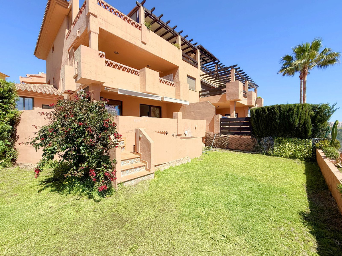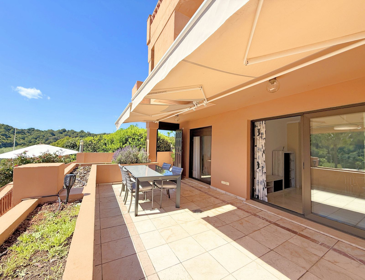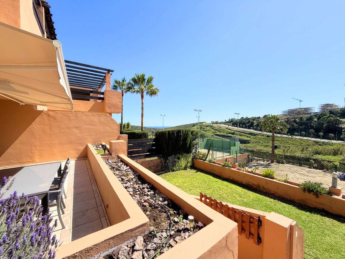 This magnificent ground-floor apartment stands out for its spacious private garden and excellent southwest orientation, ensuring exceptional brightness throughout the day and breathtaking sunsets. Located in a privileged setting on the frontline of a golf course, it offers stunning views of the mountains and the sea. It is situated in Casares Costa, within the exclusive Doña Julia Golf area, a rapidly developing zone featuring luxury developments and a Hilton hotel under construction.