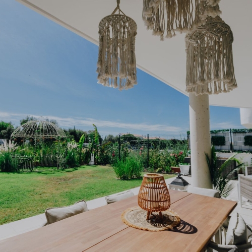 Ground Floor Apartment for sale in Benatalaya, Estepona with 2 bedrooms and 2 bathrooms, with communal swimming pool, private garage (2 parking spaces) and private garden. Regarding property dimensions, it has 112 m² built and 66 m² plot. Has the following facilities air conditioning, fully fitted kitchen, utility room, marble floors, sauna, gym, security entrance, security service 24h, private terrace, kitchen equipped, living room, mountain view, indoor pool, laundry room, internet - wi-fi, 24h service, gated community, lift, garden view, doorman, glass doors, wheelchair-accessible, recently renovated / refurbished, close to shops, close to town, close to schools, surveillance cameras and pets allowed.