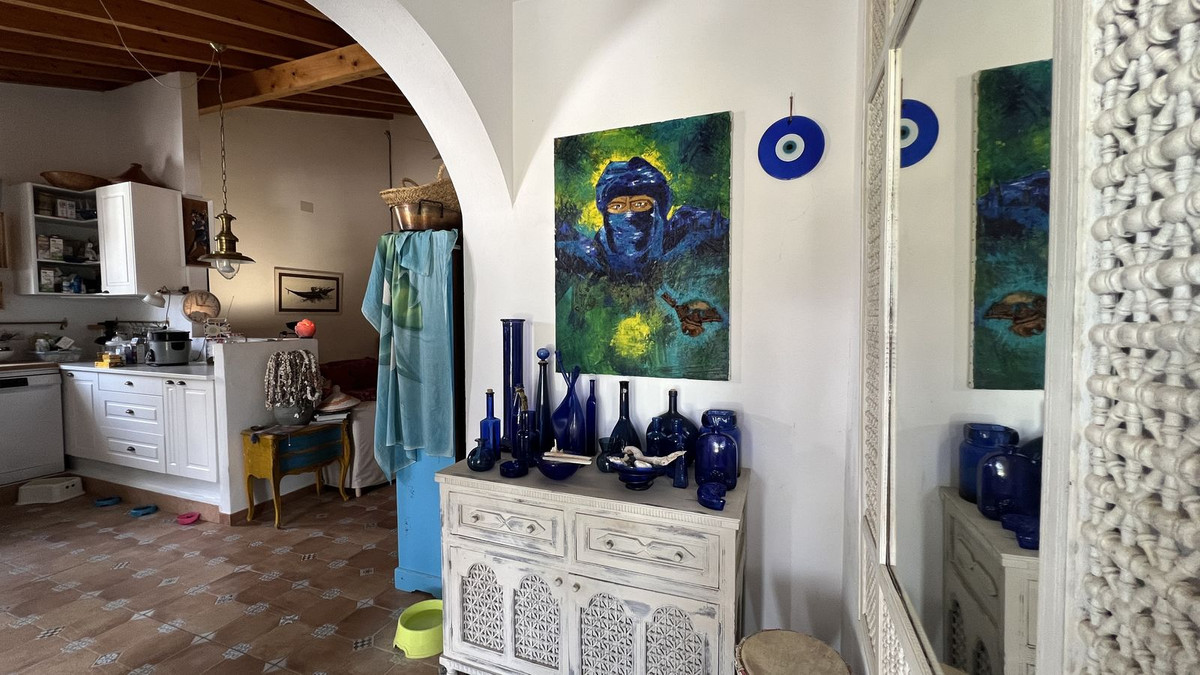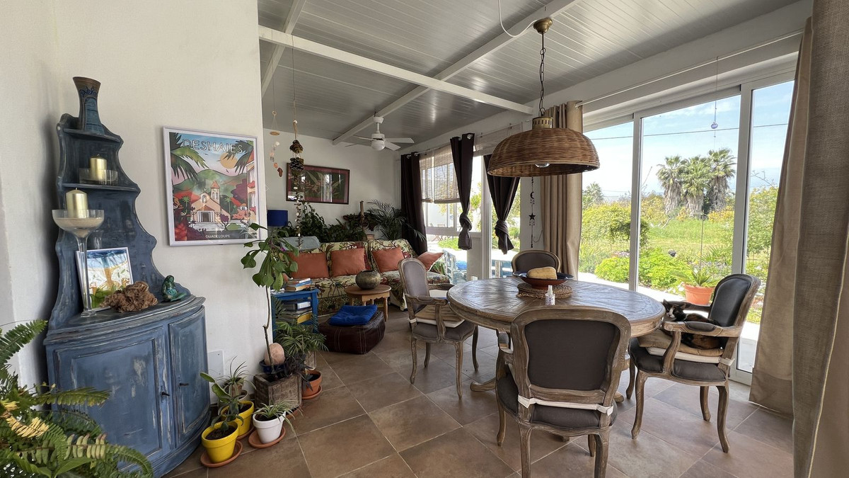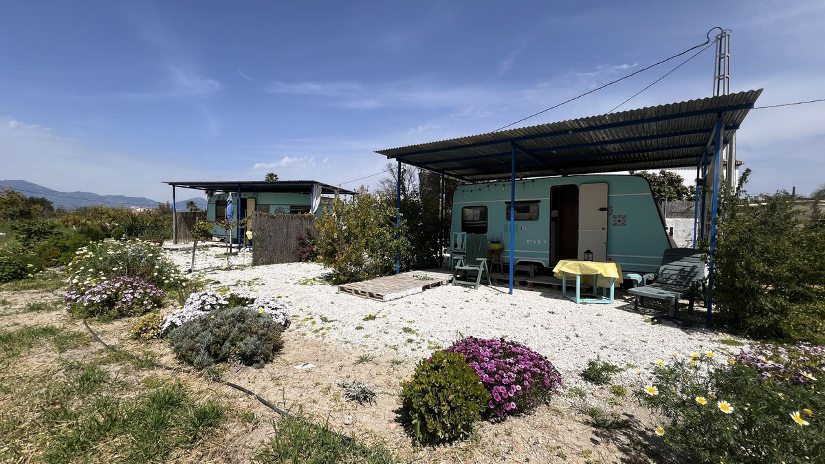 At the entrance of the property, a covered parking area provides convenient parking, while two fully equipped caravans offer additional living space, each with a kitchen, dining area, bedroom, bathroom, and private terrace, perfect for welcoming family and friends. The more than 6,000m² of fertile land is planted with numerous fruit trees, including orange, lemon, and loquat, and is divided into two sections by a path. The second plot is planted with beautiful olive trees. For added convenience, the property is equipped with town water, canal water, and a shared water well, ensuring ample irrigation. Several storage areas complete the property.
