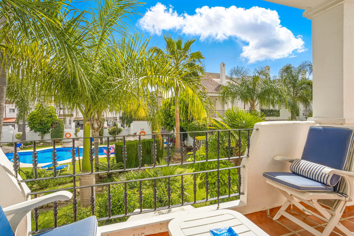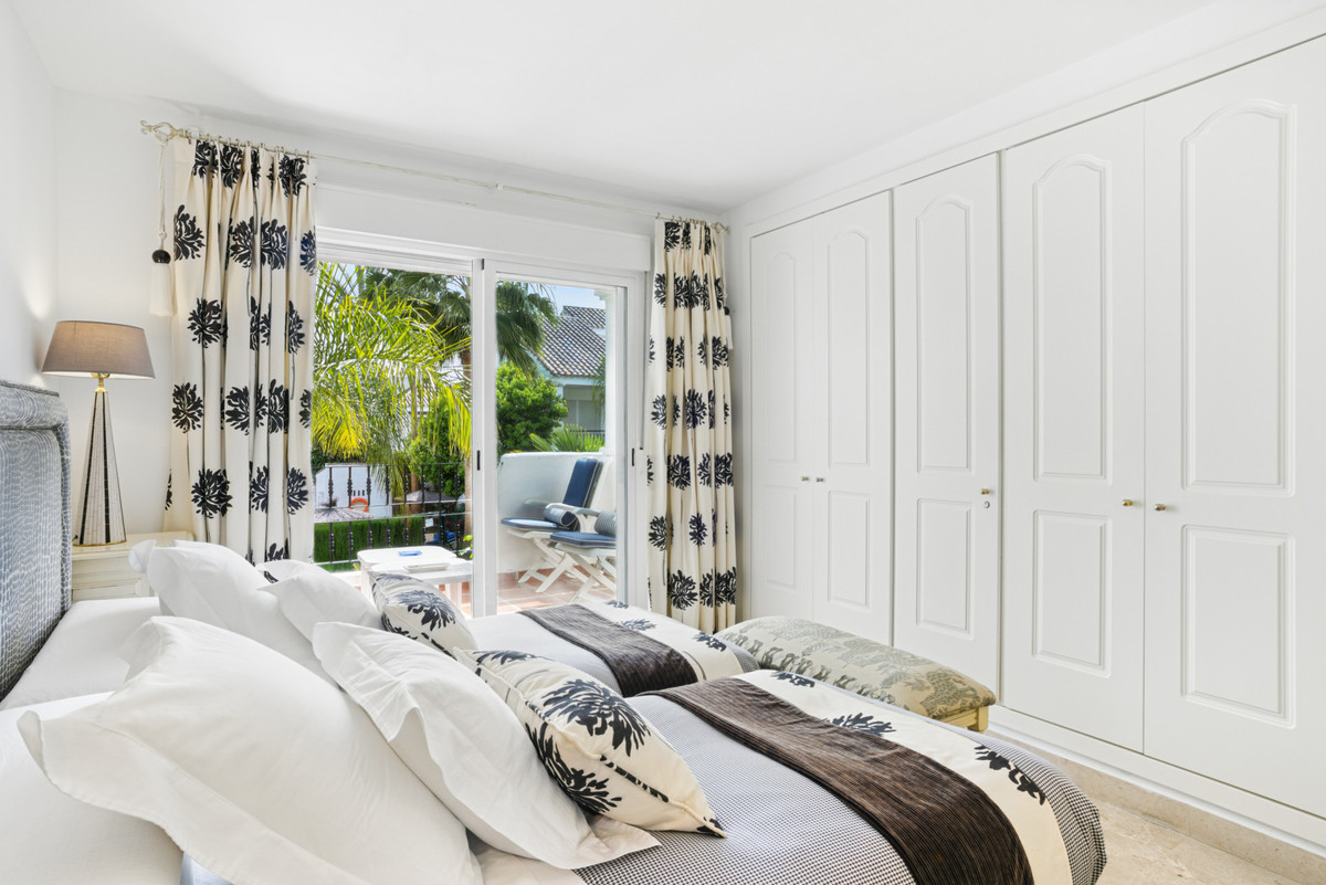 Located in the prestigious community of Los Naranjos de Marbella, this spacious semi-detached house offers a privileged setting with landscaped gardens, communal pool and a Mercadona supermarket. Within walking distance of Puerto Banus and just a few minutes drive from the center of Marbella, this house combines comfort and exclusivity. The house enjoys an excellent east-west orientation, allowing natural light throughout the day, and offers breathtaking views of the pool, gardens and mountains. On the ground floor, we find a spacious and bright kitchen with access to the utility room. The spacious living-dining room, with large windows, opens to a charming terrace ideal for enjoying the Mediterranean climate. On the first floor is the master bedroom en suite with private terrace, along with two guest bedrooms that share a bathroom. One of these bedrooms also has access to the terrace. The second floor has a solarium, perfect to relax and enjoy the panoramic views. In addition, in the attic area there is the possibility to create an additional bedroom simply by removing a partition. Among its features are the built-in wardrobes, cold/hot air conditioning, marble floors and an outdoor garage space inside the property. Unlike many townhouses, it only shares a wall with the neighbour, thus enjoying greater privacy. A unique opportunity to live in an exclusive environment, with all the amenities at your fingertips.