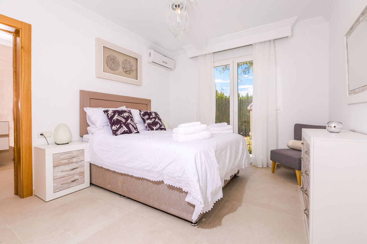 We are happy to exclusively offer you Casa Juana which is a modern, luxury 6 bedroom villa, totally refurbished to an extremely high standard in summer 2019 and constantly improved since. This superb south facing villa is located on the famous Montgo mountain, with spectacular views and only a short distance from Javea's old town, port and Arenal beach. Situated in extensive landscaped gardens, a child friendly grassed area, on a completely flat plot with good wheelchair access. The villa benefits from a 12m x 6m heated swimming pool with easy access Roman steps. The villa has outdoor entertainment with a summer kitchen and dining area adjacent to the pool which is equipped to an incredibly high standard with fridge freezer, giant "Broil King" gas BBQ and hobs. There is a smaller breakfast bar and dining for 12 by the poolside. You can also take advantage of the covered naya (terrace) with a large dining table and lounge seating which overlooks the pool. You also have uninterrupted views to the garden. Entering the house, you will find a superb open plan fully fitted modern kitchen with the latest hi tech appliances, 2 fridge freezers, breakfast bar and island, laundry room and pantry. Adjacent to the kitchen is the grand dining area with patio doors leading out onto the covered naya and then to the gardens and pool. A Large lounge area with extensive seating has patio doors again leading to the outside terraces and pool. Also on this level there are four spacious bright double bedrooms, three with en-suite bathrooms, one family bathroom and a further guest toilet. Three of the bedrooms benefit from patio doors leading directly to the garden and terraces. The master bedroom is luxurious, modern and extremely large and also benefits from a large walk in dressing area, double sized en-suite bathroom, complete with large bath and a separate walk in shower. On the first floor there are two double en-suite bedrooms, both with patio doors opening on to the south facing balcony overlooking the pool and gardens. The first floor master bedroom benefits from a private balcony and views towards the Montgo mountain.The lower ground floor has a cinema room with comfortable lounge seats and a drinks fridge. Also on this level is the games room with a full size pool table and dart board. In addition, there is a garage with space for several cars in addition to the large driveway with parking for more vehicles including under a covered carport.The property has extremely high environmental standards and comes with solar panels with battery back up, a large state of the art air source heat pump,that powers the underfloor heating and hot water. The solar array powers the heated pool, hot/cold air conditioning and the rest of the electrical requirements of the property; there is also a 14kw external power supply to back up the solar system in the winter. The current owners have maintained and updated the property to the highest standards and the property is a credit to them.This fantastic villa would be ideal for a family to live in luxury, or would be ideal for someone looking for a turnkey rental business. The property continues to register substantial rental income, with returns available for potential buyers to view, the villa can be sold fully furnished for the new owner to continue the business.