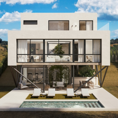 Surrounded by nature and a gorgeous green scenery, this is a new build villa project located in La Cala Golf Resort, Mijas Costa, at the Eastern side of Marbella, Costa del Sol, (Malaga Provence, Andalusia, Spain). It is just minutes away from the hustle and bustle of the coast in the beautiful Andalusian countryside but yet near to Marbella, Puerto Banus and Málaga Airport. The contemporary project consists of 15 luxury detached villas in the gorgeous green area of La Cala Golf Resort at just 35 minutes driving to/from Málaga Airport and about 15 minutes driving to the sandy beach of Marbella East and its trendy beach clubs. All Amenities such as restaurants, shops and supermarkets are also nearby.