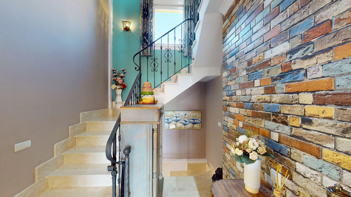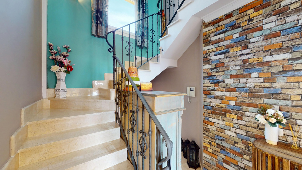 This impressive 207 m2 property in Torrox, Málaga, offers a harmonious blend of space and comfort across three floors. The home boasts five bedrooms, including a generous 13.0 m2 primary bedroom, and three well-appointed bathrooms. The interior is characterized by bright, airy spaces with a contemporary Mediterranean flair. Large sliding glass doors in the living area open to a picturesque terrace, framing breathtaking sea views and allowing abundant natural light to flood the room. The modern kitchen features light wood cabinetry, stainless steel appliances, and a convenient washer integration. Bedrooms are tastefully decorated, with built-in wardrobes and colorful accents that add personality to the neutral palette. Bathrooms are sleek and functional, featuring modern fixtures and tiled surfaces. The home's layout includes multiple living areas, a separate dining room, and ample storage spaces, including a dedicated utility room and closet. Throughout the property, architectural elements such as arched doorways and ceiling fans contribute to its Mediterranean charm. The outdoor spaces, including terraces and balconies, offer ideal spots for al fresco dining and relaxation while enjoying the coastal ambiance. This well-designed home provides a perfect balance of functionality and style, ideal for those seeking a spacious residence in the beautiful Costa del Sol region. We are pleased to be able to present this dream property to you soon, either personally or via virtual viewing. Because this world is unique - just like our Axarquía. In Andalusia. On the Costa del Sol. Here, on the sunny side of life...