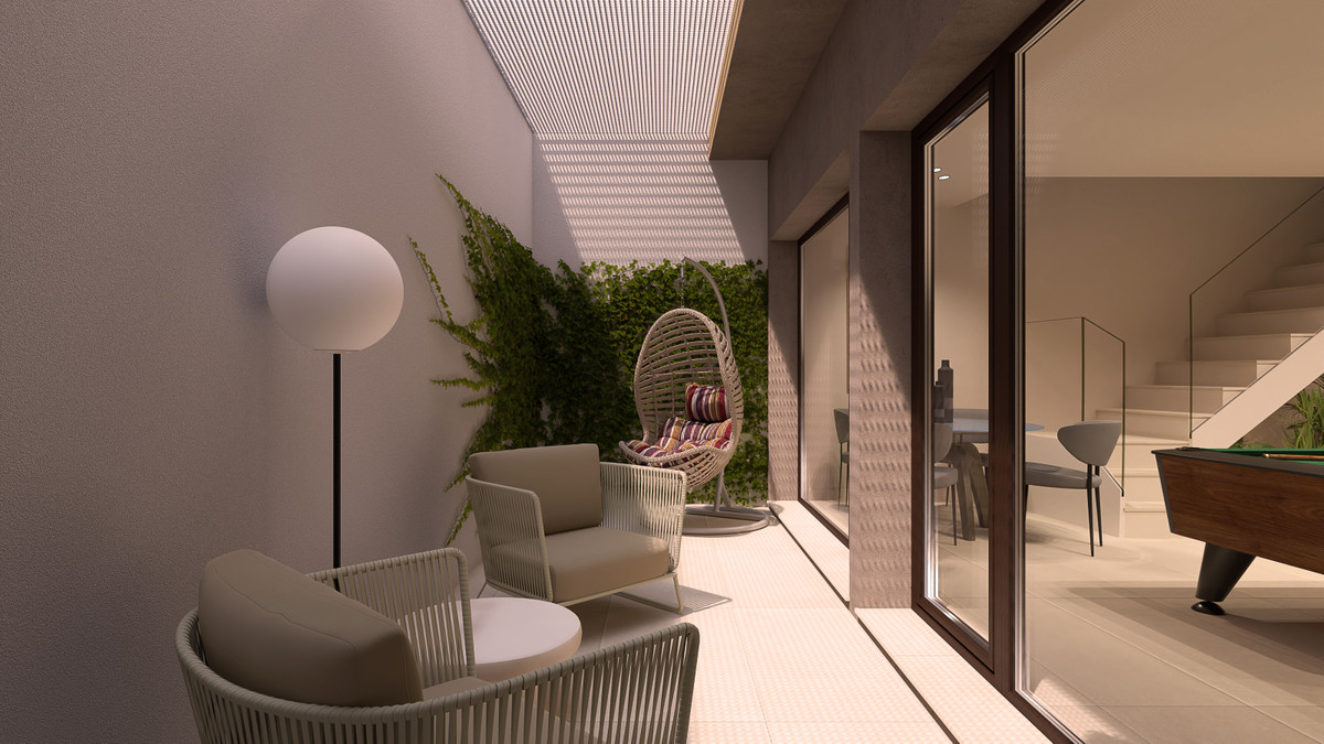This project provides a breath of fresh air to the surroundings taking advantage of its spectacular sunsets. It is a two-storey house, which develops the programme with a large living-dining-kitchen area, as well as having two suites on the ground floor and another one on the first floor, together with an office space.