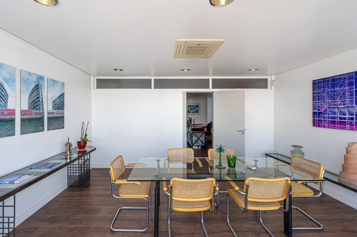 Spanning a generous built area of 414m², this commercial property offers 270m² of well-utilised interior space and a 200m² private terrace. The space is designed with flexibility in mind, featuring modern facilities, including two toilets, a kitchen, and an additional kitchenette. High-speed internet options, such as fibre optic, are available to ensure seamless business operations. The large glass doors open onto the terrace, providing lovely mountain and street views. The property is in excellent condition and has an installed alarm system for added security, with optional furniture available for customisation.