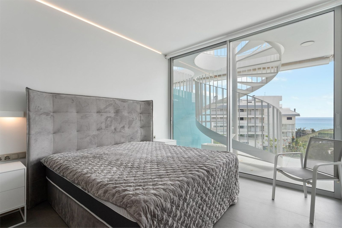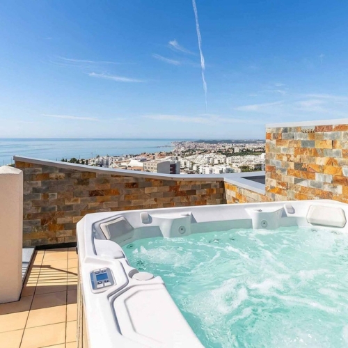 The property has a modern style and offers two bedrooms and two bathrooms, one of which is en-suite. The open kitchen and living room create a spacious and inviting atmosphere. Through the sliding doors, we access a southwest-facing terrace of 22 sqm with an impressive view of the Mediterranean Sea. Additionally, there is a rooftop terrace of 107 sqm with an installed jacuzzi, perfect for relaxation.