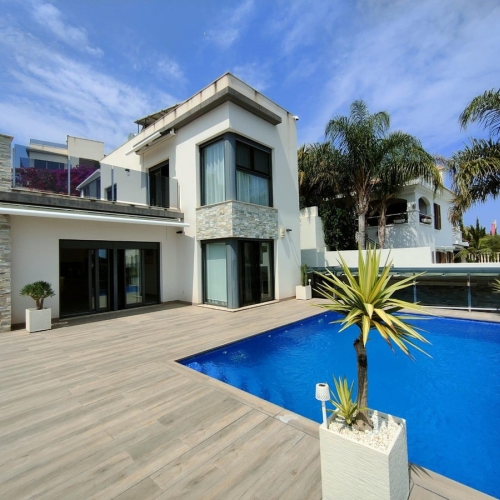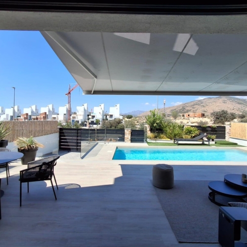 Exquisite villa with private pool and panoramic views in Sierra CortinaWelcome to a stunning 389 m² villa located in the exclusive and coveted area of Sierra Cortina, Finestrat. Built in 2019 and in impeccable condition, this elegant 5-bedroom, 5-bathroom property sits on a generous 750 m² plot, offering an unparalleled luxury lifestyle.From the first step, the villa radiates elegance and sophistication. Its spacious spaces flooded with natural light, along with premium marble and ceramic finishes, create a warm and inviting atmosphere. The interior design seamlessly integrates the living and dining areas, and a separate kitchen fully equipped with high-end appliances. It also features spacious dressing rooms and en-suite bathrooms, designed for maximum comfort.???? A full basement provides versatility and extra space, while a lush garden and a sunny terrace invite you to enjoy the outdoors ????????. The private pool ????♀️ is the icing on the cake for an unbeatable living experience.????♂️ This architectural gem stands out for its unique details:- Private gym ????️- Outdoor elevator for added convenience ????- Bio-fireplace for cozy evenings ????- Southeast-facing balcony ???? guaranteeing all-day sun???? The villa includes a complete security system: alarm, armored main door, and electronic access, providing peace and tranquility to its residents ????️????.Enjoy open views of greenery and mountains, creating a serene and inspiring environment. It also features master bathrooms, a guest toilet, and a laundry room, masterfully combining functionality and style.Experience luxury at its finest in this exclusive property. Its impeccable design, top-notch amenities, and prime location make it a unique opportunity for those seeking the best of the Costa Blanca.Don't miss the chance to make this magnificent villa in Sierra Cortina yours!