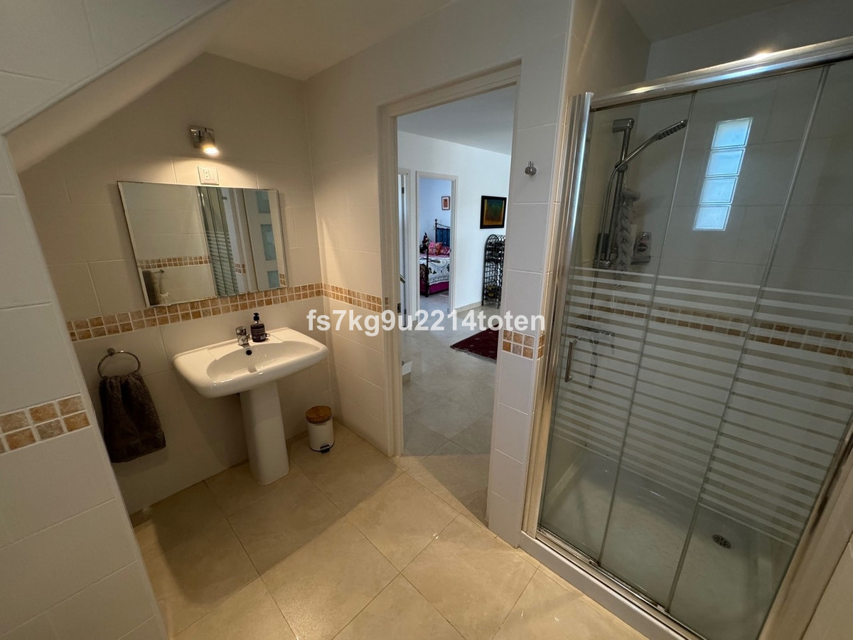 The lower floor offers even more space, with three additional double bedrooms and a family shower room. One of these bedrooms features an en-suite shower room and could serve as a primary suite. This level also includes a large room that is used as a second television room.  Alongside the door that leads out to the swimming pool is a second kitchen, fully equipped.  With the layout of this beautiful home it offers the potential to be divided into 2 self-contained living areas, making it perfect for guests, rentals or extended family.