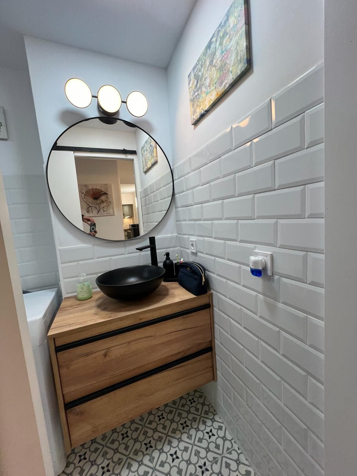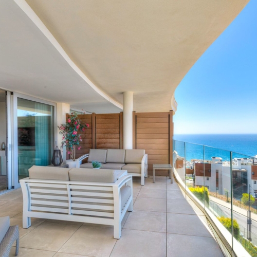 The living-dining area opens onto a private terrace with panoramic sea views. Functional kitchen, bright bedroom with built-in wardrobe, and a full bathroom. Well-maintained building with all essential services nearby: restaurants, supermarkets, public transport, and leisure options.