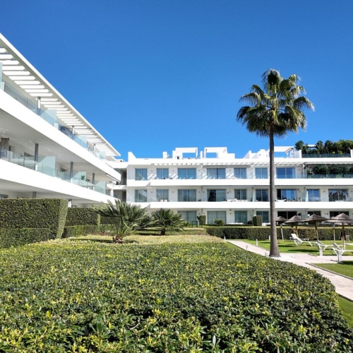 Situated in a complex close to amenities and the village of Cancelada, this apartment makes an ideal family home, or holiday home for golfers, or sun and beach lovers. Its spacious interior features large living / dining room with access out to the terrace and west facing garden, kitchen, separate utility room, master bedroom with ensuite and a further double bedroom plus family bathroom.