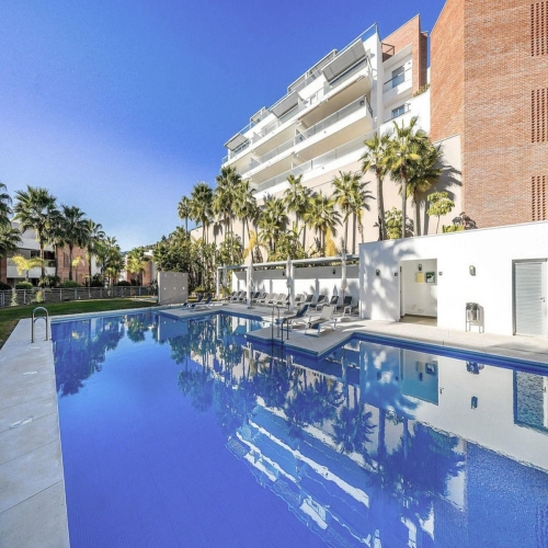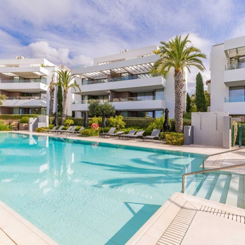 Modern 2-bedroom, 2-bathroom apartment in the sought-after urbanisation Los Robles de Los Arqueros. Enjoy a spacious west-facing terrace with afternoon sun and stunning views over El Higueral golf course. The property comes with a private underground parking space and a storage room. The community features 24-hour security, a large swimming pool, a children's pool, and beautifully maintained gardens.