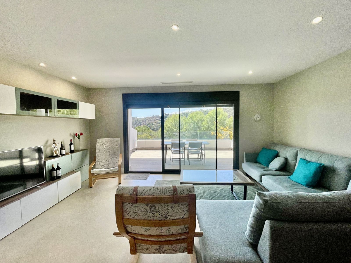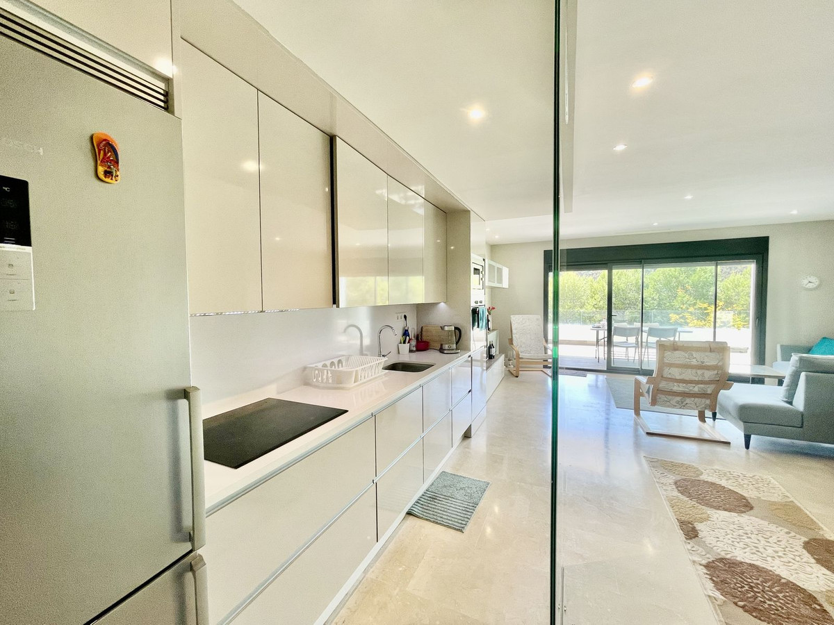 This stylish two-bedroom, two-bathroom apartment is located on the first floor of the sought-after Ocean Hills complex in Selwo, Estepona. Completed in 2017, the property offers a generous 94 m² built area, with 80 m² of usable interior space, complemented by an impressive 51 m² terrace.