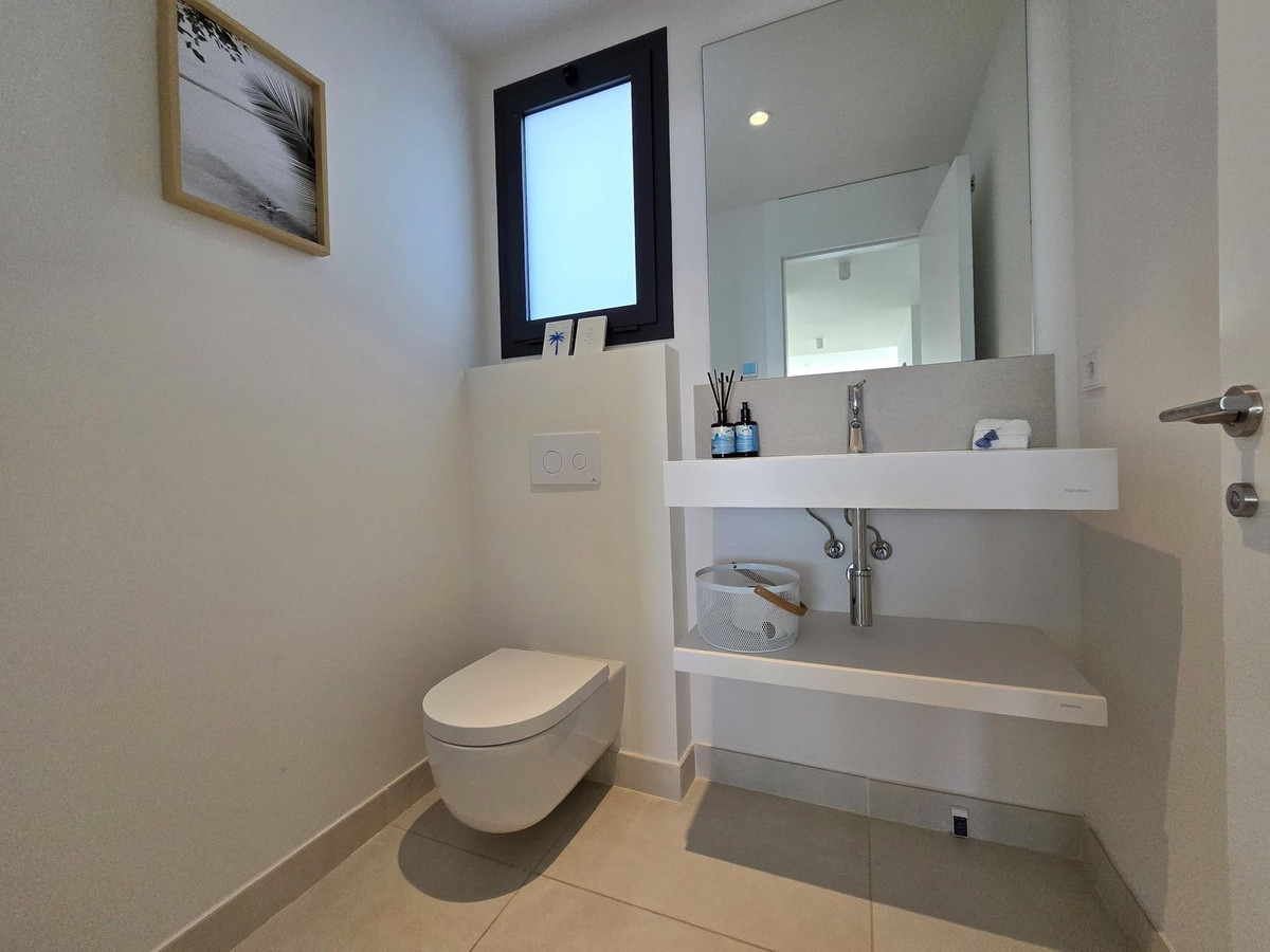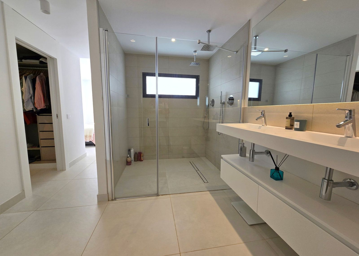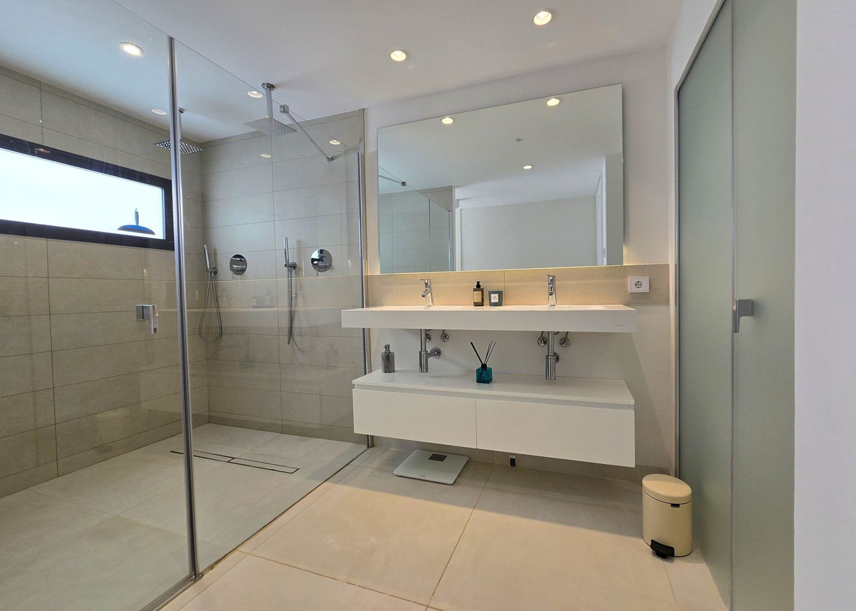 The kitchen is fully equipped with high-end appliances including some expensive extras such as a wine cooler. The master bedroom features a private luxury en-suite bathroom, walk-in closet, and access to the terrace. Two further bedrooms sharing a spacious bathroom are just perfect for family or guest. Guest toilet. Situated on a corner it provides total privacy.
