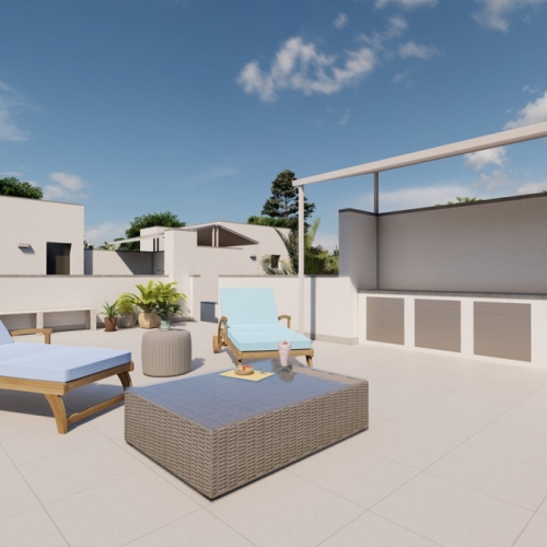 Project of 44 multi-family homes with 2 and 3 bedrooms with 2 parking spaces and 1 storage room included in each of the homes. They are part of an exclusive private complex equipped with 2 community pools surrounded by garden areas that will allow you to enjoy the hottest days of the year with your loved ones.