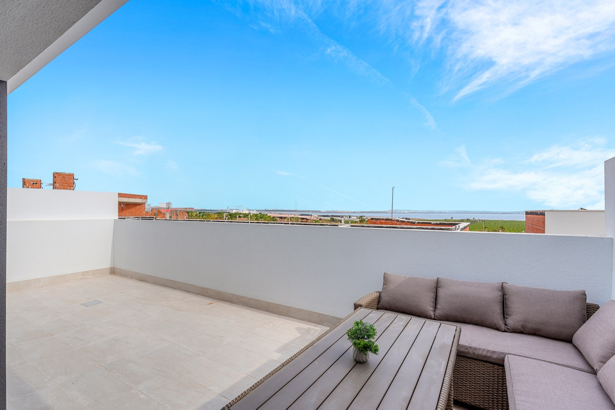 Welcome to a beautiful ground floor apartment in the popular and green area of Los Balcones in Torrevieja. The property is located in a large, modern residential complex and offers a peaceful environment, lush communal gardens and two spacious swimming pools - perfect for enjoying the Mediterranean lifestyle. As you enter you are greeted by a private terrace, perfect for relaxing or entertaining. Inside the property there is a bright and spacious living room, a fully equipped modern kitchen, a master bedroom with en suite bathroom, a second bedroom and a separate bathroom. At the back of the apartment there is a second terrace with a stunning view of the famous salt lakes. The terrace offers a unique and peaceful environment for daily use. One of the most striking features of this home is the fully finished basement. This spacious space includes a large additional living room, a large third bedroom, a bathroom and a separate laundry room. From the basement you have direct access to a private parking space and a spacious, separate utility room - perfect for storing everything in an orderly and secure manner. Whether you are looking for a permanent residence, a holiday home or a solid investment on the Costa Blanca, this apartment offers space, comfort and quality in a fantastic location.