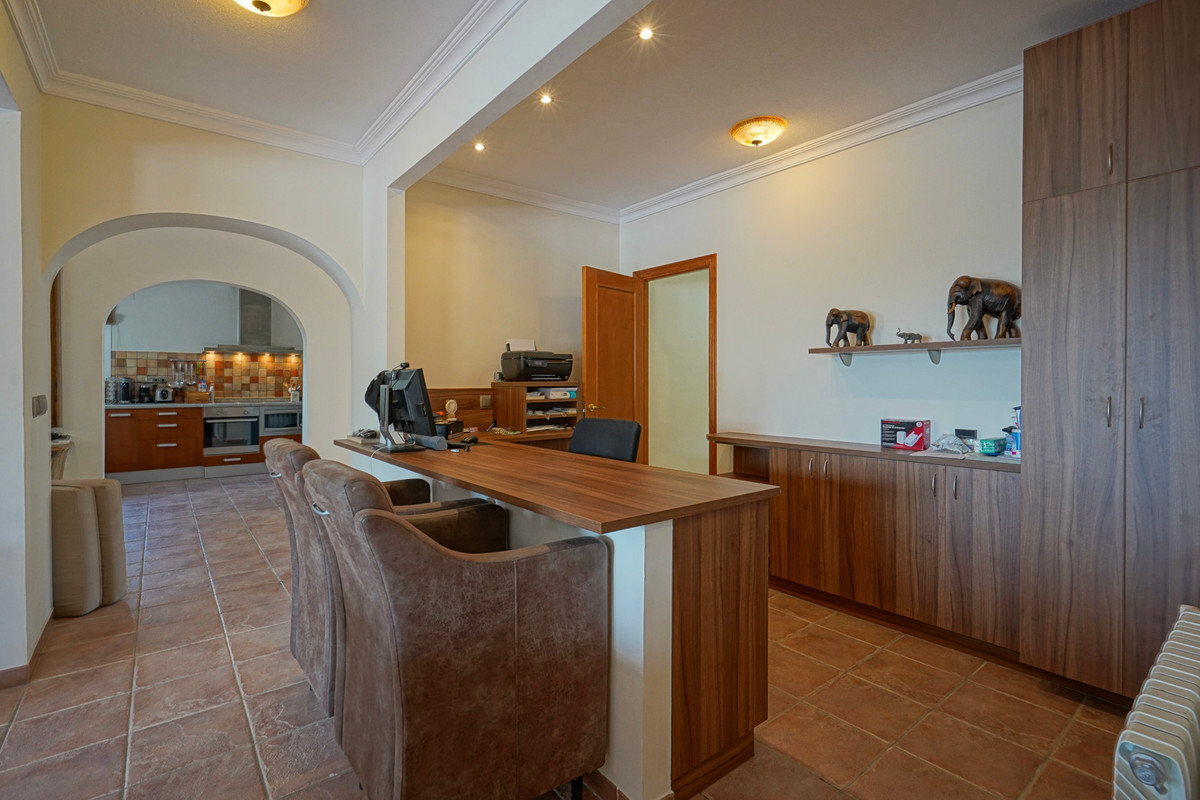 The villa was built in 2004 and always very well maintained. Thanks to a clever layout, the entire private residence of 173 m2 is located on one floor adjacent to the pool. One floor below is a spacious separate guest house of 113 m2 and a separate room that can be converted into a studio. The guest house is internally connected to the upper floor, but also has private access.