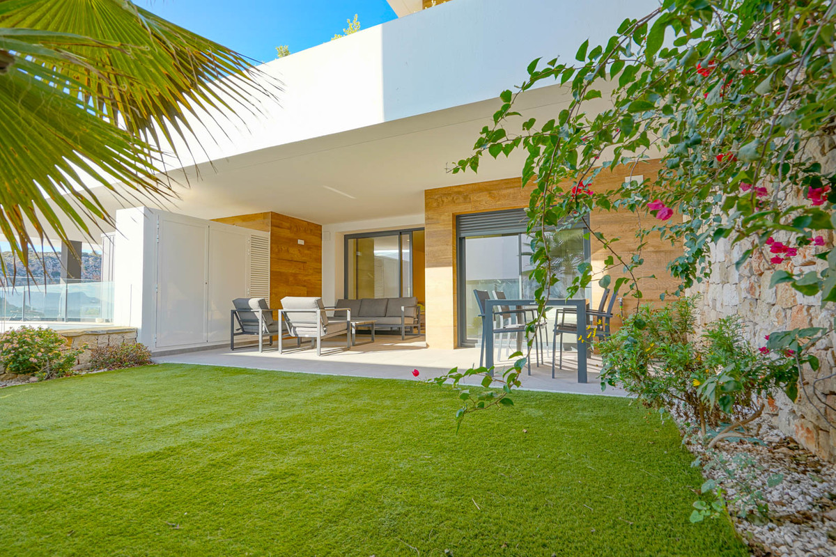 Outside there is a spacious covered terrace of 23m2 with a lounge and dining area. In front of the terrace is a beautiful garden of 36 m2 with open views over the extensive nature reserve that separates Cumbre del Sol from Moraira. The natural stone wall on the east side provides you complete privacy from your neighbours while the southern-west orientation guarantees you will be able to enjoy the sun all year round.