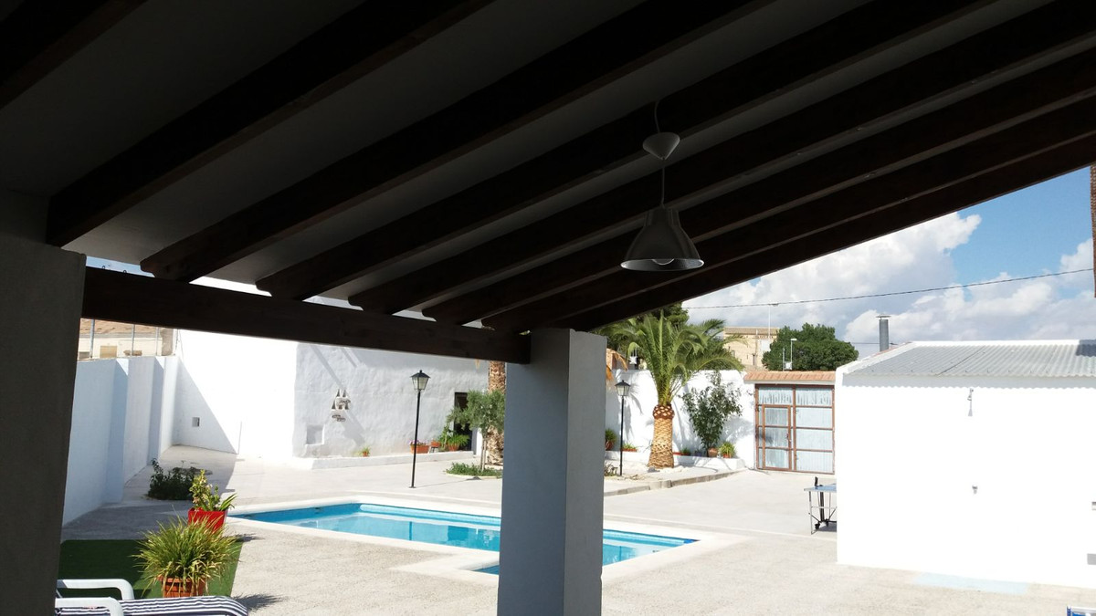 This wonderful villa in Torre del Rico, has approximately 1000 meters built. The main house has 700m2 divided into 2 floors. Inside the house there are 5 bedrooms, 2 bathrooms, living room, kitchen, utility room and larder. The house is very well occupied as it is delivered with furniture and white goods. It also has central heating, 2 fireplaces, pre installation of satellite TV ...On the outside, the house has 600 m2 of plot, fully fenced and with electric entrance gate, this plot has vegetation and is ideal to have a perfect garden. It has a 200 m2 surface perfect to use as a workshop, create a house for guests ... There is also an outdoor kitchen and a 70m2 loft.One of the places that makes this property very special is the approximately 400m2 internal patio. The area of this patio is very beautiful and is very well maintained, has a pool and is perfect to enjoy the tranquility and privacy that this place offers. In addition there is a small covered porch with a small kitchen and living room, perfect for relaxing.The house includes parking space / garage.The location of this property is ideal, since on the one hand it is at the entrance of the city, so you can find everything you need nearby; supermarket, bars, restaurants ... But also, being an independent house offers privacy and tranquility.If you like this property, do not hesitate to contact us to arrange a visit.We are specialists in the Costa Blanca and Costa Calida specialising in the Alicante and Murcia Inland regions with a particular emphasis on Elda, Pinoso, Aspe, Elche and surrounding areas. We are an established, well known and trusted company that has built a solid reputation amongst buyers and sellers since we began trading in 2004. We offer a complete service with no hidden charges or surprises, starting with sourcing the property, right through to completion, and an unrivalled after sales service which includes property management, building services, and general help and advice to make your new house a home. With a portfolio of well over 1400 properties for sale, we are confident that we can help, so just let us know your preferred property, budget and location, and we will do the rest.