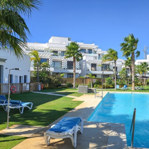 Rare opportunity to purchase a corner penthouse apartment located in the La Noria area of La Cala de Mijas so an easy walk to the town and beach. The west facing terrace has afternoon and evening sun plus owners have the option to install a staircase to access a private roof terrace if you want additional outdoor space. Bright open plan lounge diner with fully fitted kitchen and 3 double bedrooms. The main bedroom has a walk in wardrobe and a gorgeous en-suite bathroom. The guest bedrooms have the use of the additional shower room plus there is an extra guest toilet which could be made into a 3rd bathroom if required. Finished to the highest quality with hot and cold air conditioning this property also includes 2 underground parking space and a huge storeroom. Owners also use of the beautiful communal swimming pool and the upcoming spa. We have keys in the office for you to come and visit this gem of a property