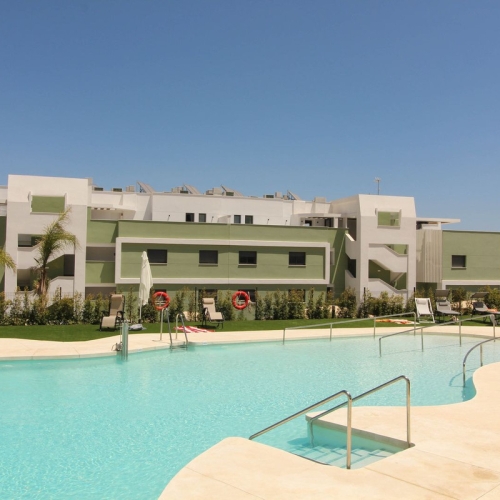 Ground Floor Apartment for sale in , Mijas Costa with 3 bedrooms, 2 bathrooms, 1 on suite bathroom and with orientation east, with communal swimming pool, private garage (1 parking spaces) and private garden. Regarding property dimensions, it has 108 m² built and 26 m² terrace. Has the following facilities amenities near, transport near, air conditioning, fully fitted kitchen, jacuzzi, sauna, satellite tv, solar panels, storage room, gym, security entrance, double glazing, security service 24h, private terrace, kitchen equipped, mountain view, indoor pool, heated pool, security shutters, internet - wi-fi, covered terrace, 24h service, electric blinds, fitted wardrobes, gated community, lift, garden view, tennis / paddle court, doorman, close to children playground, close to sea / beach, close to golf, uncovered terrace, glass doors, optional furniture, spa, wheelchair-accessible, excellent condition, close to shops, close to town, close to schools, surveillance cameras and pets allowed.