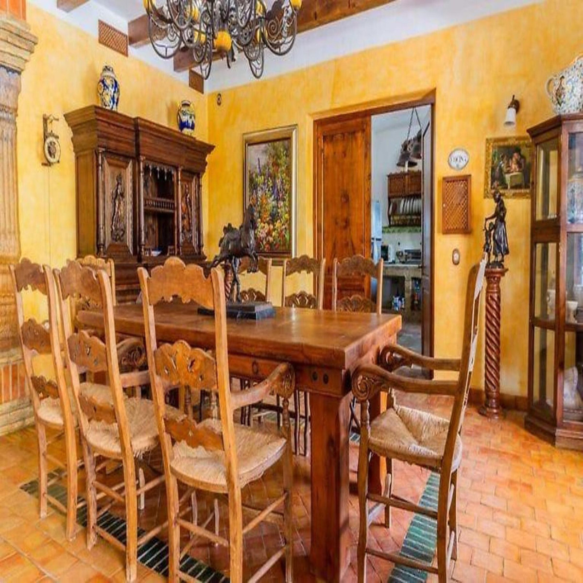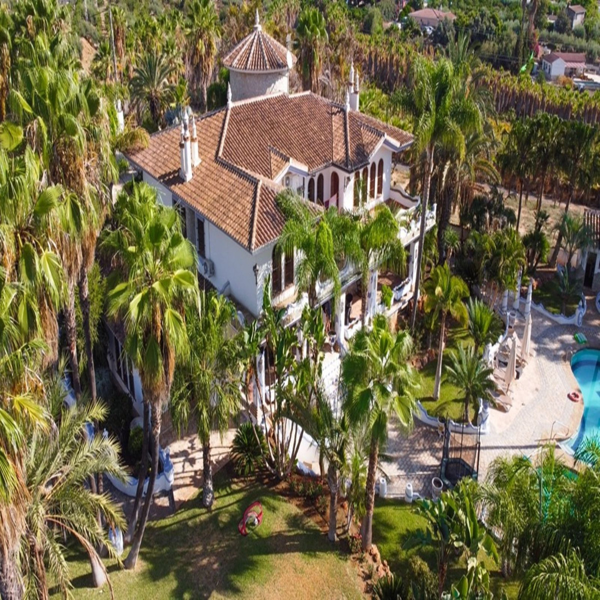Basement: A small wine cellar, a recreation room with a bar, a billiard room, two small bedrooms, and an office. From there, you can directly access a connection to the two machinery rooms for the pool and the irrigation system for the entire property.