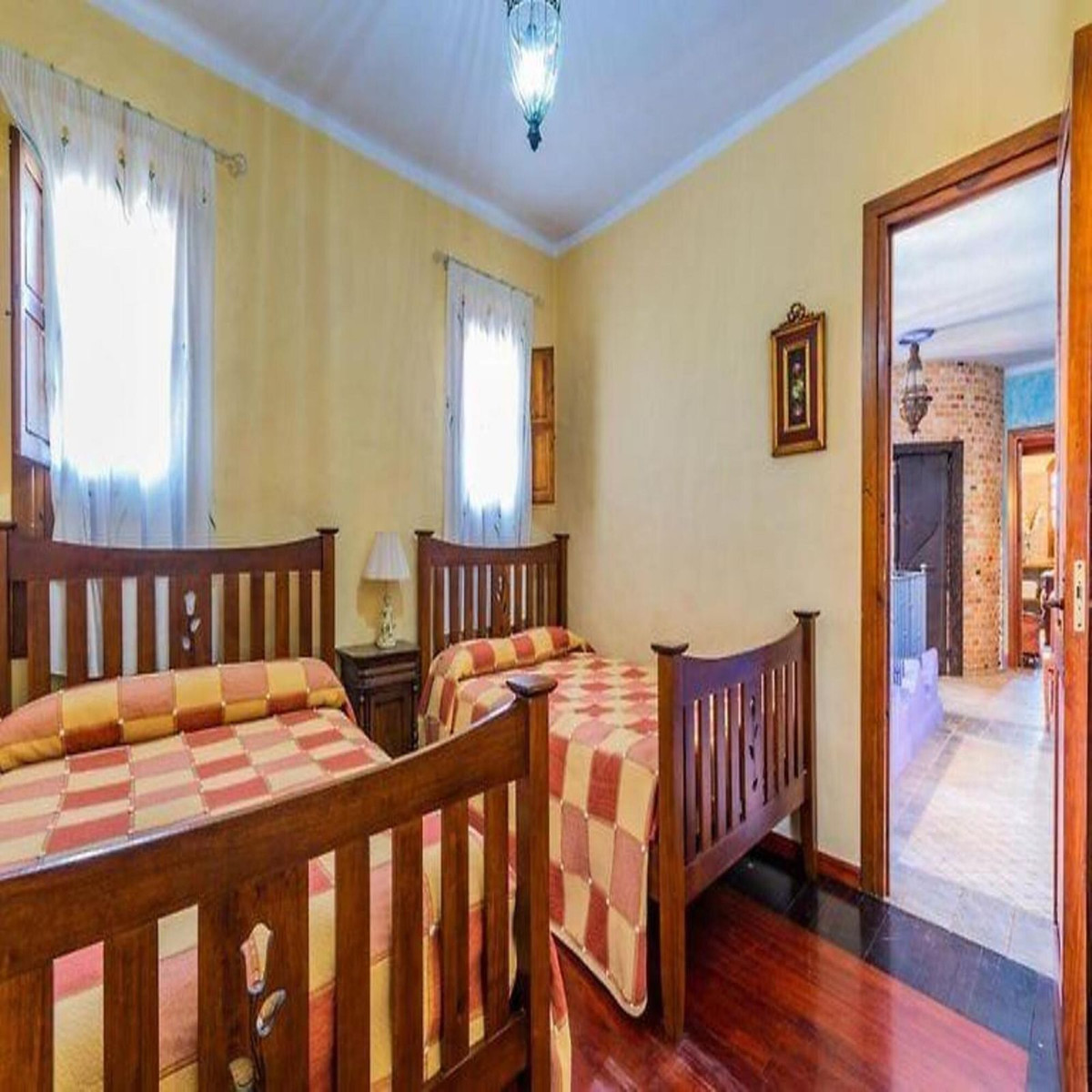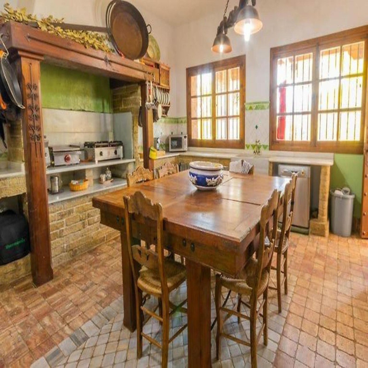 The main house consists of a ground floor with a large living room with access to the covered terrace, a very spacious kitchen with a pantry and access to the porch and covered terrace. Also located on the ground floor is a Turkish bath, indoor pool, shower, and sauna, which needs renovation.