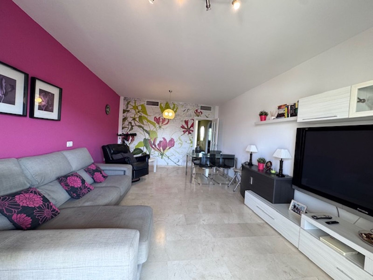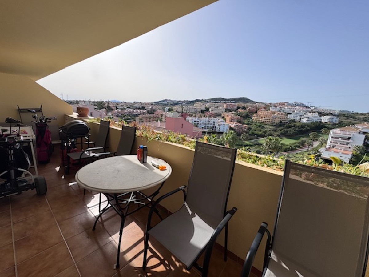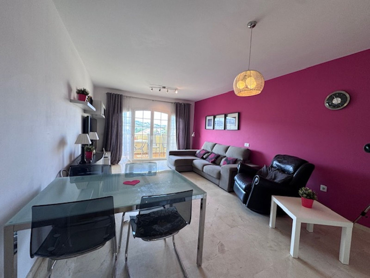 The master bedroom with an en-suite bathroom also has direct access to the terrace. The second bedroom is double. The comfortable dining and living area opens onto a terrace with lovely views of the sunset and the picturesque Miraflores golf course.