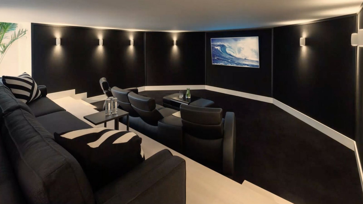 This residence boasts a spectacular triple-height main living room, creating a grand yet welcoming ambiance. The open-plan dining room and kitchen are ideal for hosting, while shaded terraces provide the perfect setting for al fresco dining. Spend cozy evenings around the fire pit with sunken seating, or enjoy cinematic experiences in the dedicated cinema room. The wine cellar and games room add sophistication and entertainment to this exceptional home.