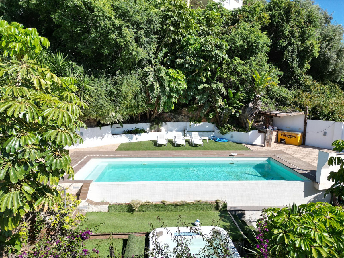The spacious living and dining room is the heart of the house and is connected to a separate kitchen, which offers direct access to the large terrace. From here, a few steps lead to the beautifully landscaped garden and the inviting swimming pool. Next to the pool you will find a lovely Jacuzzi - an ideal place to relax and unwind surrounded by greenery.