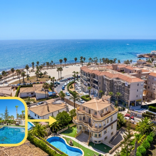 This stunning newly renovated detached villa offers the perfect blend of space, comfort, and flexibility in a highly desirable location. Just a 10-minute walk from the popular Emerald Isle with its public swimming pool and entertainment, the property is also within a short walking distance of the Abbey Tavern and Mumbai Blue, offering great dining and social options close by. Additionally, the famous Zenia Boulevard shopping center and the beautiful beaches of La Florida (Playa Flamenca, Punta Prima, La Zenia & Cabo Roig) are both less than a 10-minute drive away, making this an ideal spot for those seeking convenience and coastal living.With five bedrooms and two bathrooms, this home is perfect for large families or those seeking multi-purpose living. The property features separate housing on each floor, with three bedrooms and one bathroom upstairs, while the downstairs offers a self-contained two-bedroom, one-bathroom space with an open-plan kitchen and private entrance—ideal for extended family, guests, or rental opportunities.A glazed breakfast terrace provides a bright and relaxing space to start your day, while the tiled patio garden offers ample room for outdoor enjoyment, with the potential to add a private pool. The villa also includes a spacious roof solarium, perfect for soaking up the sun or enjoying the views. Additional features include air conditioning, gas central heating, and off-road parking. The garage has been transformed into a home gym but can easily be repurposed if needed.A standout feature of this property is the separate outhouse, which can serve as a guestroom, home office, or workshop, providing extra versatility to suit your lifestyle. The property also includes a garden shed for additional storage. With its prime location, adaptable living spaces, and excellent outdoor areas, this villa is a rare opportunity that offers both comfort and potential.