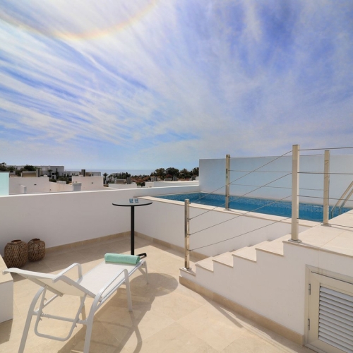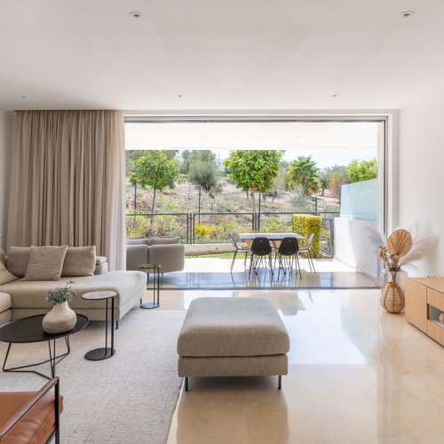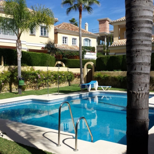 This renovated townhouse in Pinos de Aloha combines modern comfort with Mediterranean charm. Located in a quiet residential area near Aloha Golf Club, it offers a peaceful setting while being close to Puerto Banús, shops, and international schools, including the prestigious Aloha College.