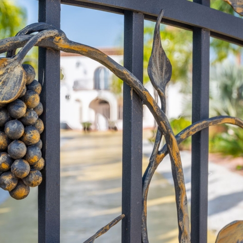 • Beautifully landscaped plot with graveled areas, mature Mediterranean trees, shrubs, and hedges.