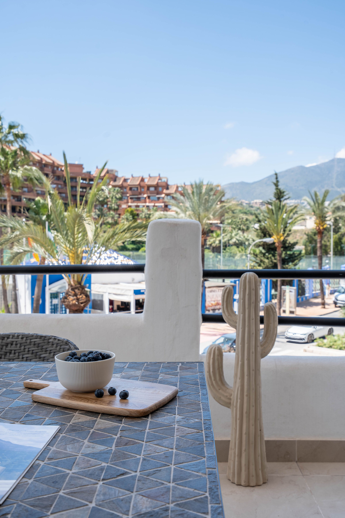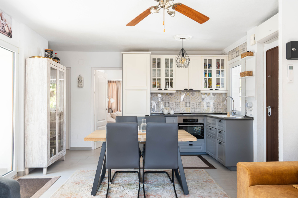 This beautifully renovated two-bedroom corner penthouse apartment offers the perfect blend of top location, high-quality finishes, and exceptional comfort. Situated in the most desirable part of the sought-after Pueblo Evita complex – in a peaceful corner position right on Avenida Las Palmeras – it is just a short stroll from the beach and all amenities.