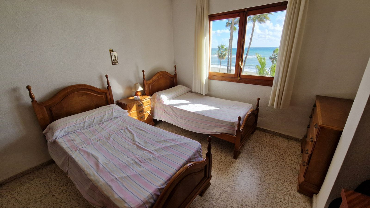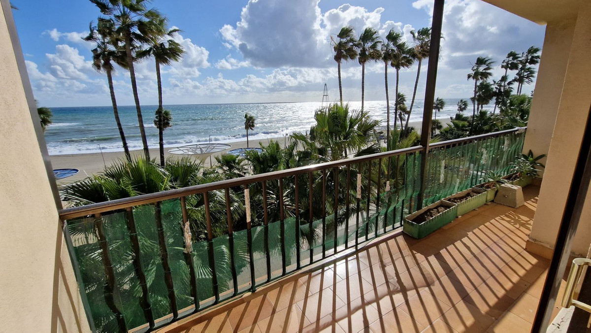 Flat on the beachfront with stunning sea views, is located in the best place in Estepona without noise by the extension of the promenade and no cars pass, the house has three very spacious and sunny bedrooms facing south, has two bathrooms and fully equipped kitchen with utility room, very spacious living room with access to the terrace with a breathtaking open view