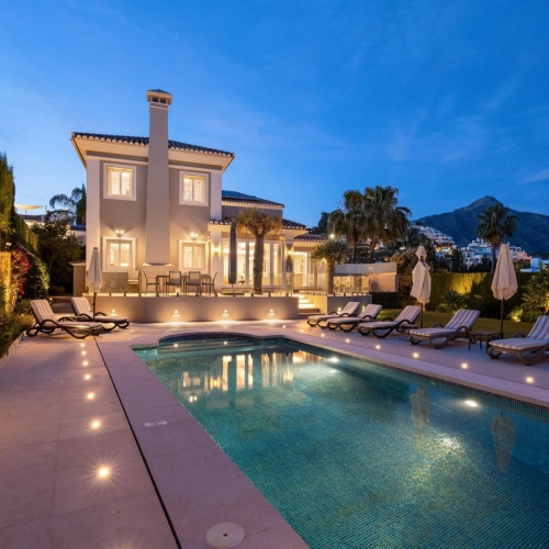 This outstanding property is a refined and soulful villa, thoughtfully crafted by renowned designers Puroform. Nestled in a prime location in Nueva Andalucía, this exquisite home perfectly blends sophisticated living with leisure and entertainment, offering a tranquil retreat in the heart of the Golf Valley.