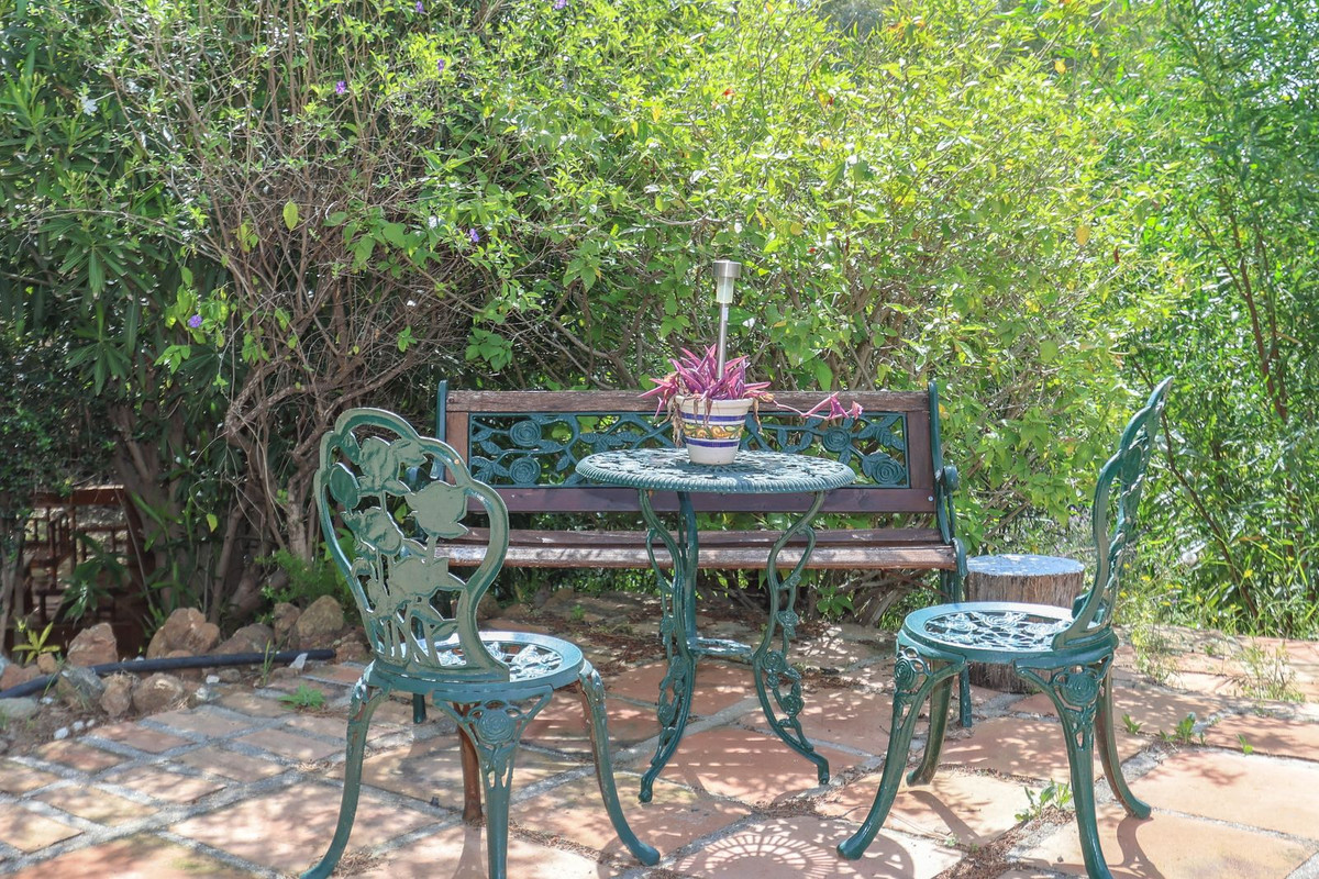 Following the stream and passing a large fish pond, you arrive at a completely separate two-bedroom property with its own pool. Hidden from view of the main house, this area is a serene oasis with breathtaking views of the surrounding mountains and valley. Adjacent to this house is a charming one-bedroom casita, offering even more accommodation or rental potential.