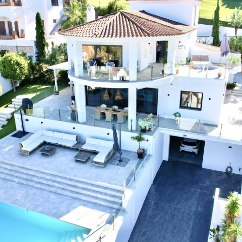 Fantastic luxury modern villa right in the heart of La Cala Resort. Here you have everything you ever asked for luminous, luxury , loveable, villa. Panoramic views from the Solarium whilst relaxing in the jacuzzi of the Golf, the undulated sourounding mountains, Countryside you can even o see down to the sea.