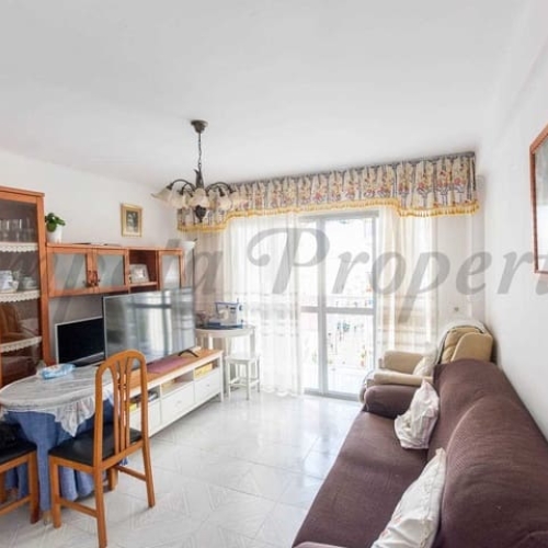 Situated on the 2nd floor of a well-maintained building with lift access, the apartment features a spacious open-plan living area with a modern kitchen, a stylish bathroom with shower, and a comfortable double bedroom. A small private balcony adds to the charm, offering a perfect spot to enjoy the Mediterranean breeze.