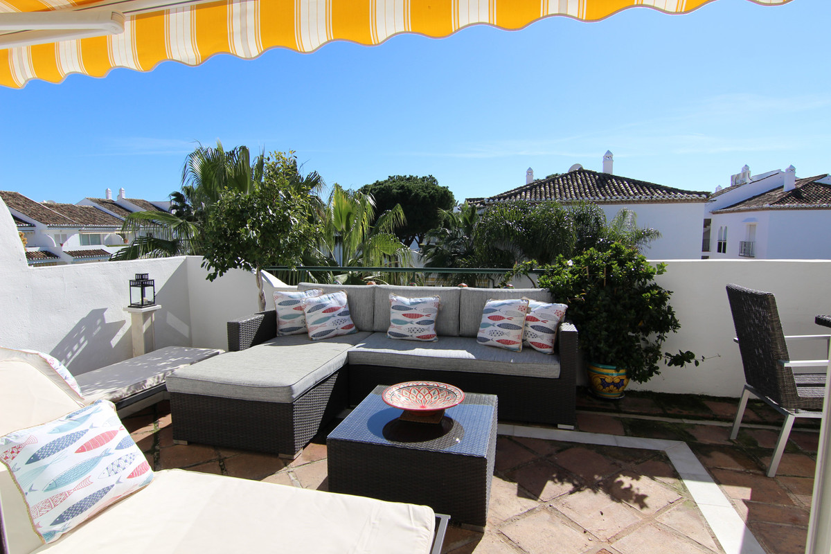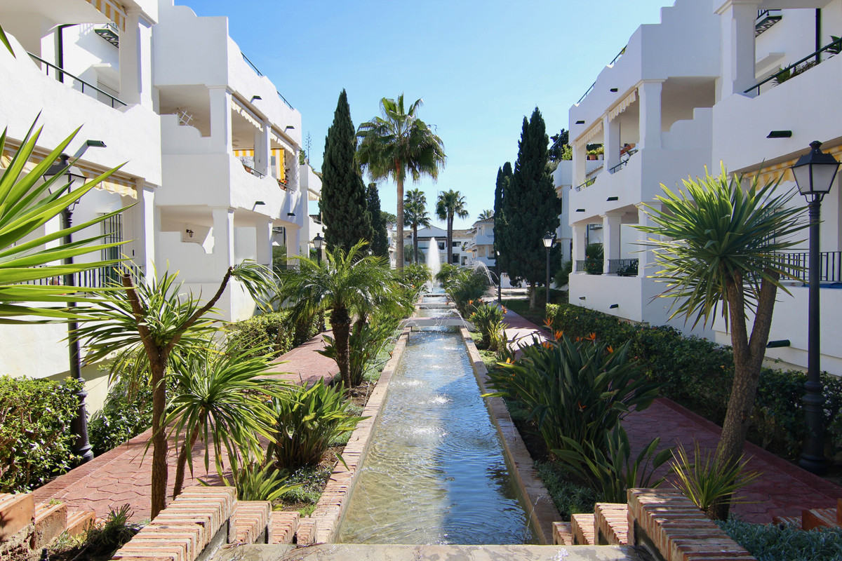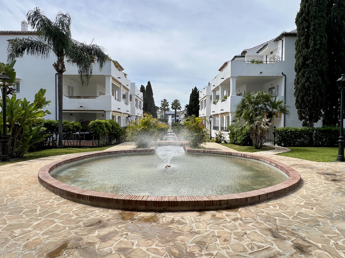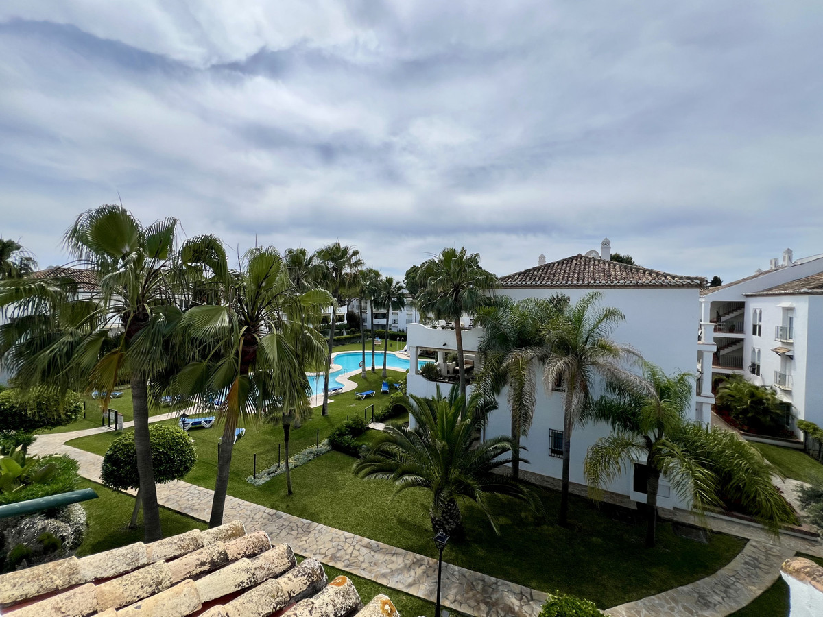 Fantastic top-floor apartment, south-facing, in El Presidente. The beautiful entrance, filled with aromatic plants, welcomes us, and as soon as we enter the hall, we appreciate how the entire apartment is bathed in sunlight. The spacious living and dining room, with large sliding glass doors, opens onto the very sunny terrace. The master bedroom also has direct access to the same terrace and features an en-suite bathroom. The second bedroom overlooks a charming pine forest. The second bathroom also serves as a guest toilet. The kitchen is fully equipped. El Presidente offers a large parking area, five swimming pools, one of them heated all year around, wonderful mature communal gardens with fountains, tennis and paddle courts, and 24-hour security. Amenities, supermarkets, and restaurants are within walking distance, as well as the beach, the new Estepona coastal path, and excellent restaurants such as Salduna, just 250 meters from the development. Do not miss the opportunity to visit this great opportunity!