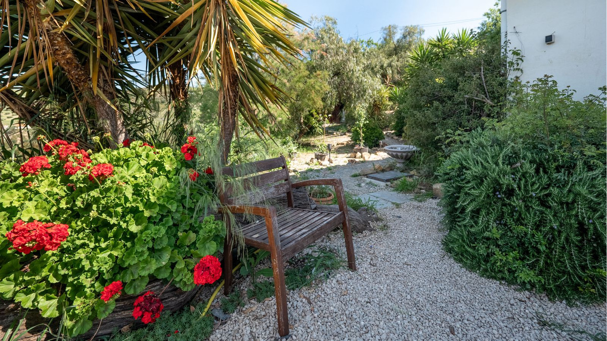 The plot of 1,500m² features lovingly maintained gardens filled with mature trees and shrubs. A large, gated courtyard connects the main living spaces and outbuildings, offering the ideal setting for alfresco dining or lounging. One of the property's most unique features is the preserved Era – a traditional threshing circle – now serving as a dramatic space for laundry drying with one of the best views in the region.