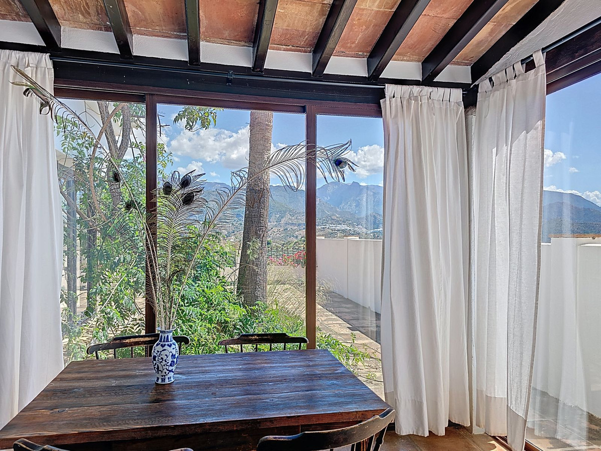 Be enchanted by this characteristic Spanish villa, where traditional architecture and modern comfort come together in a unique living experience. The detached main house consists of two harmoniously connected wings, surrounded by a lush garden with olive and fig trees, and offers breathtaking panoramic views over the whitewashed villages of Frigiliana and Nerja, with the majestic mountains of Andalusia in the background.