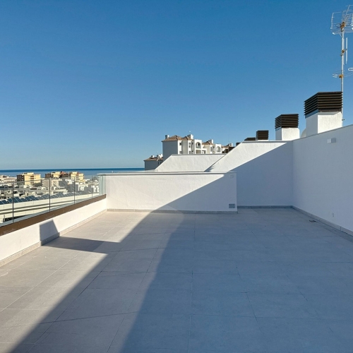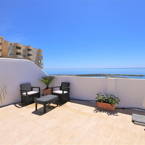 Penthouse for sale in Atalaya Golf, Estepona with 3 bedrooms, 2 bathrooms, 1 on suite bathroom, 1 toilet and with orientation south/west, with communal swimming pool and communal garden. Regarding property dimensions, it has 118 m² built and 43 m² terrace. Has the following facilities transport near, air conditioning, fully fitted kitchen, jacuzzi, guest room, solarium, double glazing, guest toilet, private terrace, kitchen equipped, living room, sea view, mountain view, golf view, security shutters, internet - wi-fi, covered terrace, fitted wardrobes, gated community, lift, garden view, close to children playground, close to sea / beach, close to golf, uncovered terrace, glass doors, open plan kitchen, balcony, optional furniture, wheelchair-accessible, recently renovated / refurbished, ceiling cooling system, ceiling heating system, close to shops, close to town, close to schools and pets allowed.