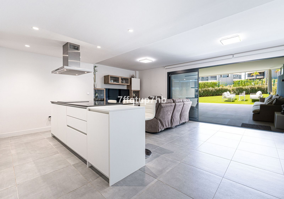 This 3-bedroom apartment features an open-plan design, seamlessly integrating a modern, fully equipped kitchen with the living area. The space opens onto a spectacular south-facing terrace and a private 80 m² garden, perfect for basking in the endless sunlight that characterizes the Costa del Sol.
