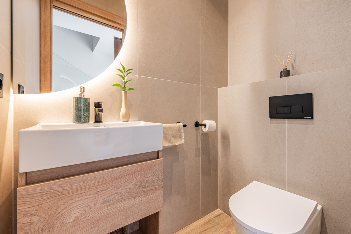 The home features 4 bedrooms, 3 bathrooms, and an additional guest toilet. The open-plan living area flows seamlessly onto a spacious west-facing terrace and garden, ideal for entertaining or relaxing outdoors while enjoying the afternoon sun. An outdoor kitchen enhances the alfresco lifestyle, perfect for enjoying Marbella's year-round sunshine.