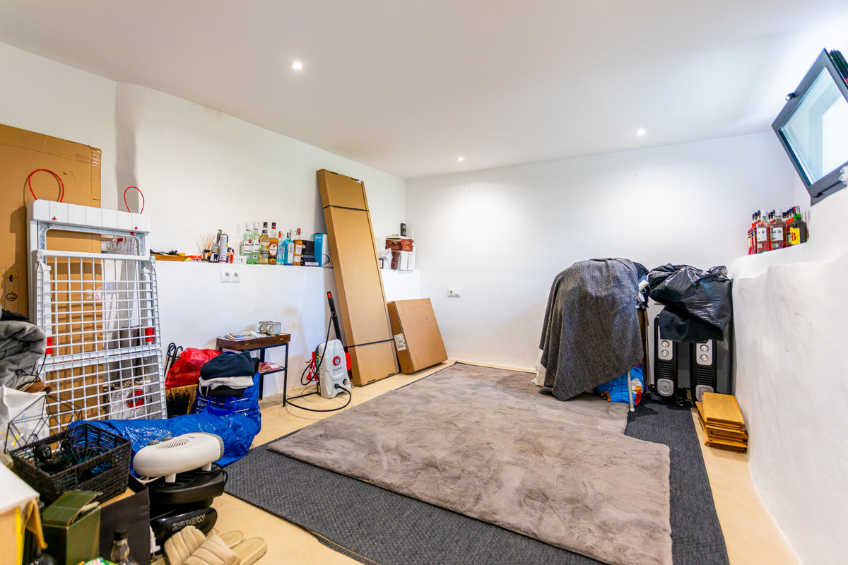 The villa's lush garden is a tranquil haven, filled with mature trees, vibrant plants, and manicured shrubs. The centrepiece is a stunning pool with elegant wooden decking and a stylish poolside bar, perfect for entertaining. To the side of the property, a small orchard with fruit trees adds a charming touch of nature.