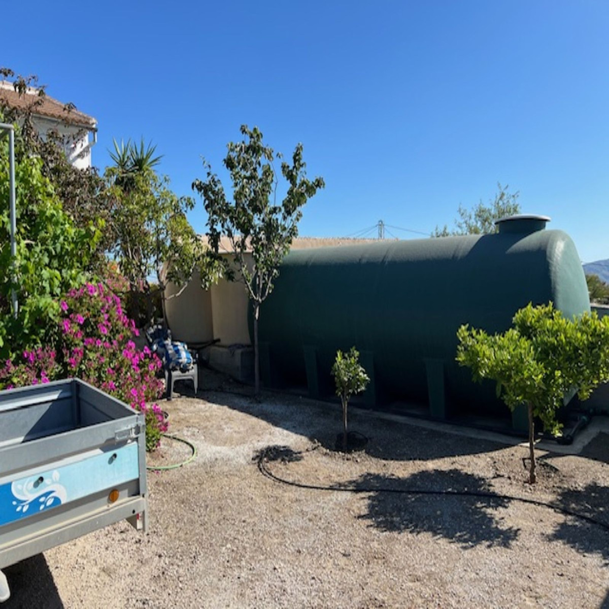 The property is very well maintained, has a BBQ area, a very flat backyard that even fits a pool, the drip irrigation system is excellent, there is electricity and mains water,