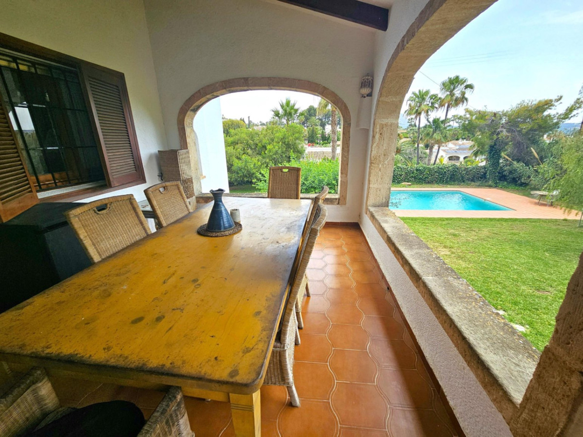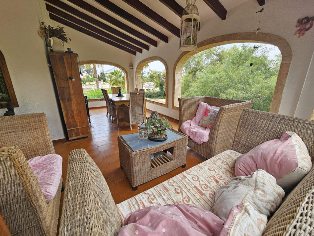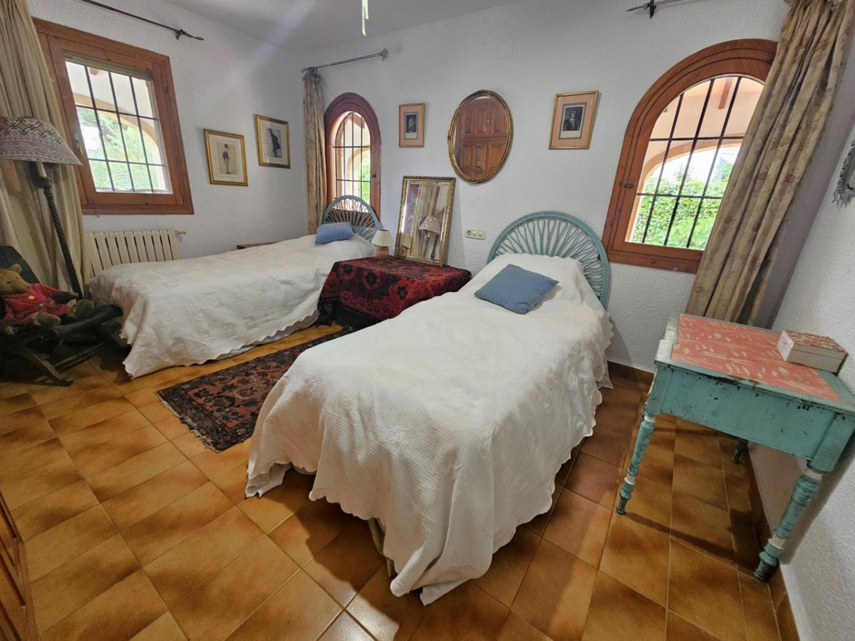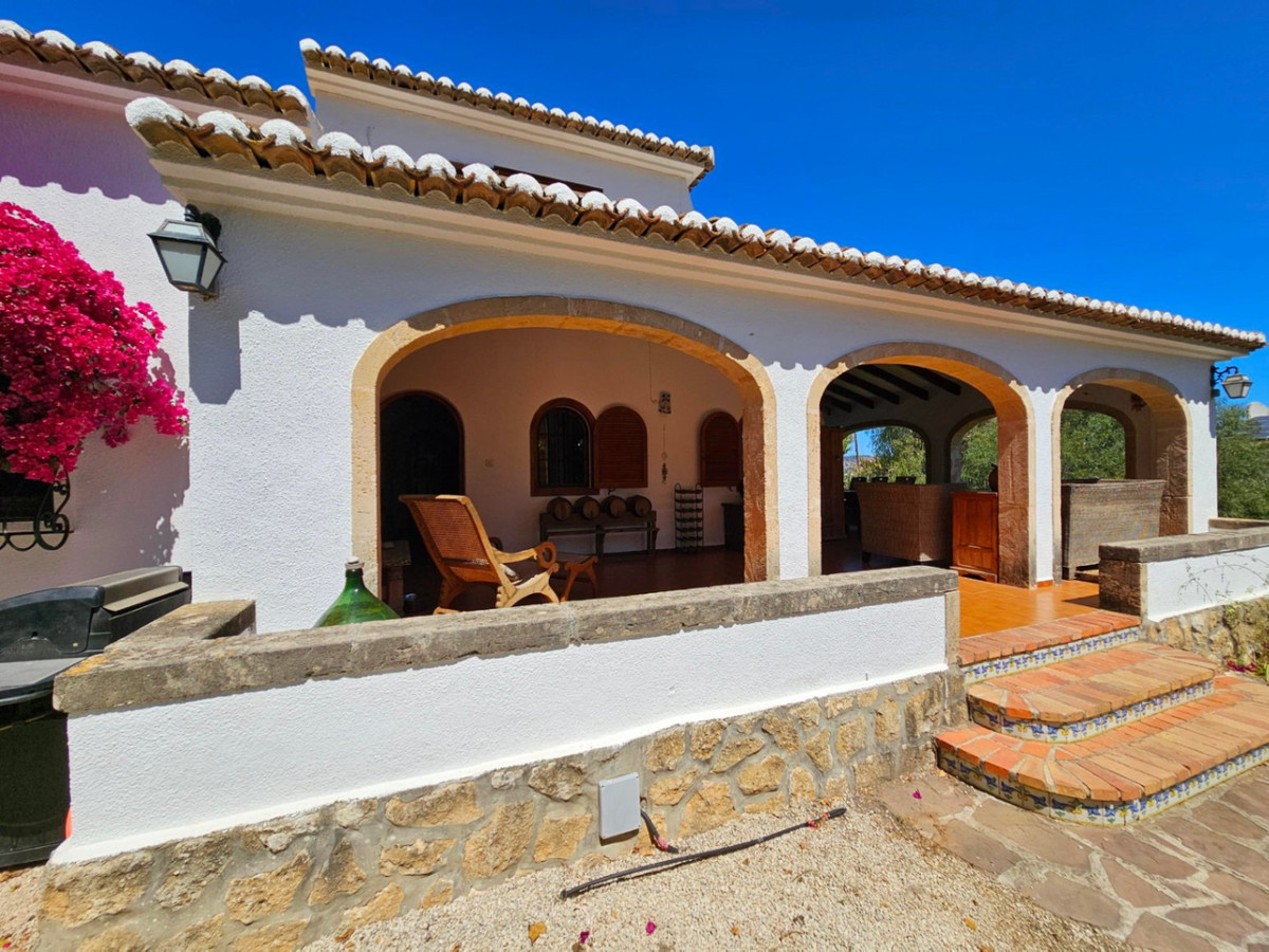 We present to you exclusively this beautiful traditional Villa in Jávea. Upon arriving at the property, we find a private parking area with sufficient space for four cars. Entering the Villa, we are welcomed by a hall that leads to a very spacious living-dining room, with the dining area featuring double-height ceilings. Passing through a beautiful Tosca stone archway, we enter the living room, which has a lovely wood-burning fireplace, also made of Tosca stone, making the space very cozy. The kitchen is a good size, with room for a table and chairs, and is equipped with many natural wood cabinets, providing plenty of storage space, along with a laundry room that makes daily life much easier. Additionally, on this floor, we have a full bathroom. On the upper floor, we find four double bedrooms, with built-in wardrobes and three bathrooms, two of which are en suite, as well as a spacious terrace from the master bedroom, with open views and a glimpse of the sea. The lower floor, accessible from an interior door, features a living-dining room with a small open kitchen, two bedrooms, a fully renovated full bathroom equipped with a shower, and another room that is currently used as storage but could be converted into a gym or another bedroom. The exterior of the Villa is a perfect place to enjoy the good weather, admire the views of Montgó, refresh ourselves in the 10x5 pool, sunbathe on the grass, or enjoy the spacious L-shaped naya with beautiful Tosca stone arches, reading a book, having dinner with family or friends, or simply sitting back and relaxing with a glass of wine. The entire Villa is equipped with diesel heating, wooden windows on the upper part, and tilt-and-turn double-glazed windows on the lower part.