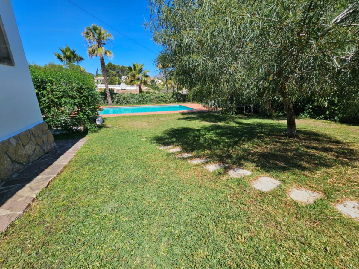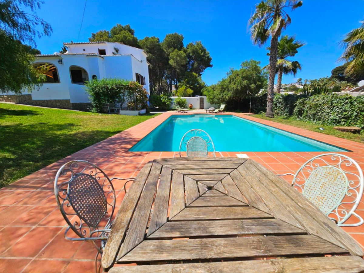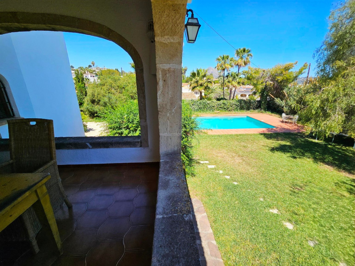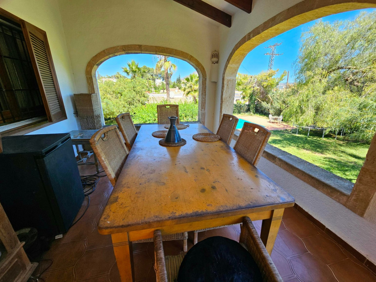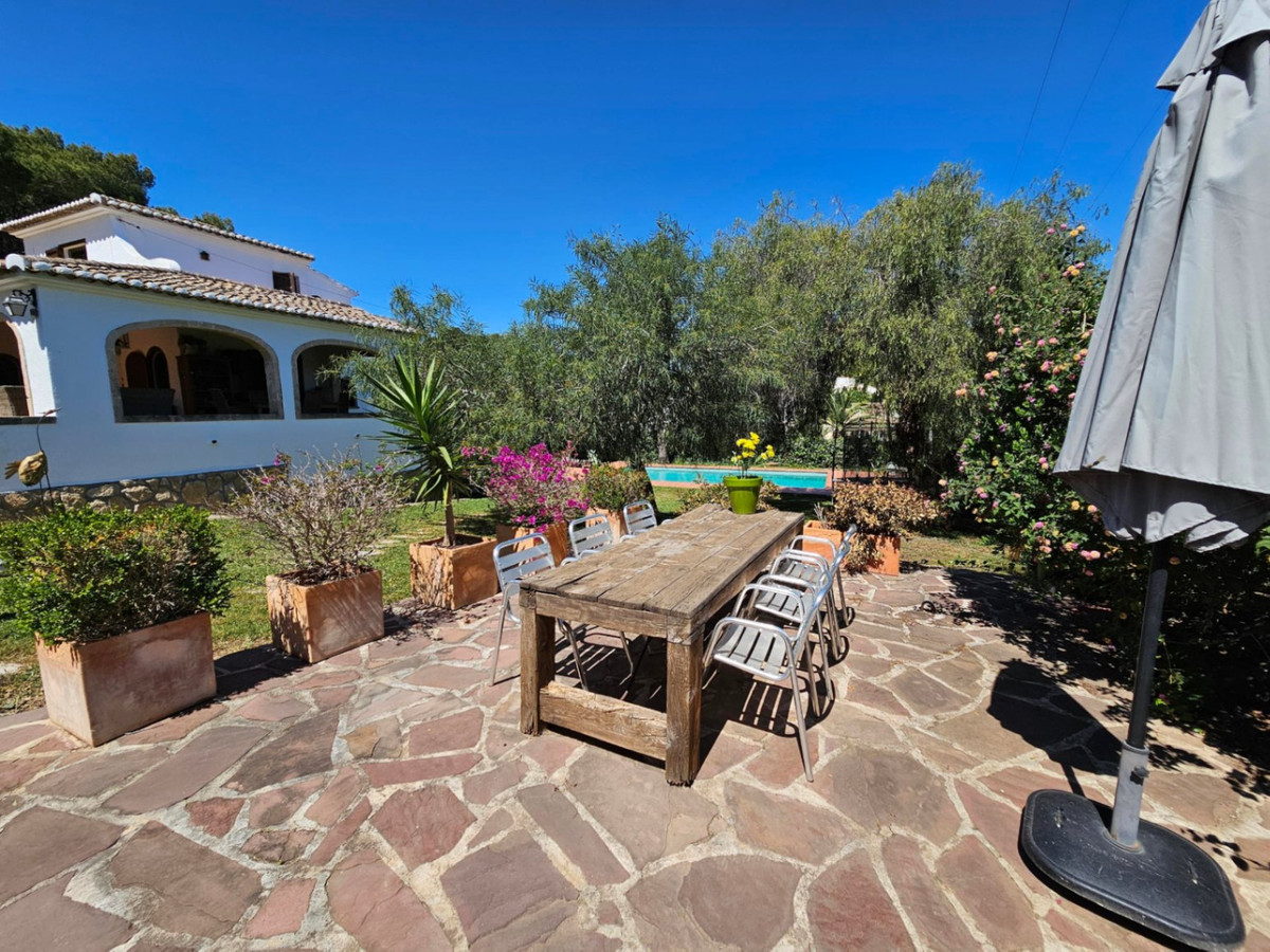 We present to you exclusively this beautiful traditional Villa in Jávea. Upon arriving at the property, we find a private parking area with sufficient space for four cars. Entering the Villa, we are welcomed by a hall that leads to a very spacious living-dining room, with the dining area featuring double-height ceilings. Passing through a beautiful Tosca stone archway, we enter the living room, which has a lovely wood-burning fireplace, also made of Tosca stone, making the space very cozy. The kitchen is a good size, with room for a table and chairs, and is equipped with many natural wood cabinets, providing plenty of storage space, along with a laundry room that makes daily life much easier. Additionally, on this floor, we have a full bathroom. On the upper floor, we find four double bedrooms, with built-in wardrobes and three bathrooms, two of which are en suite, as well as a spacious terrace from the master bedroom, with open views and a glimpse of the sea. The lower floor, accessible from an interior door, features a living-dining room with a small open kitchen, two bedrooms, a fully renovated full bathroom equipped with a shower, and another room that is currently used as storage but could be converted into a gym or another bedroom. The exterior of the Villa is a perfect place to enjoy the good weather, admire the views of Montgó, refresh ourselves in the 10x5 pool, sunbathe on the grass, or enjoy the spacious L-shaped naya with beautiful Tosca stone arches, reading a book, having dinner with family or friends, or simply sitting back and relaxing with a glass of wine. The entire Villa is equipped with diesel heating, wooden windows on the upper part, and tilt-and-turn double-glazed windows on the lower part.