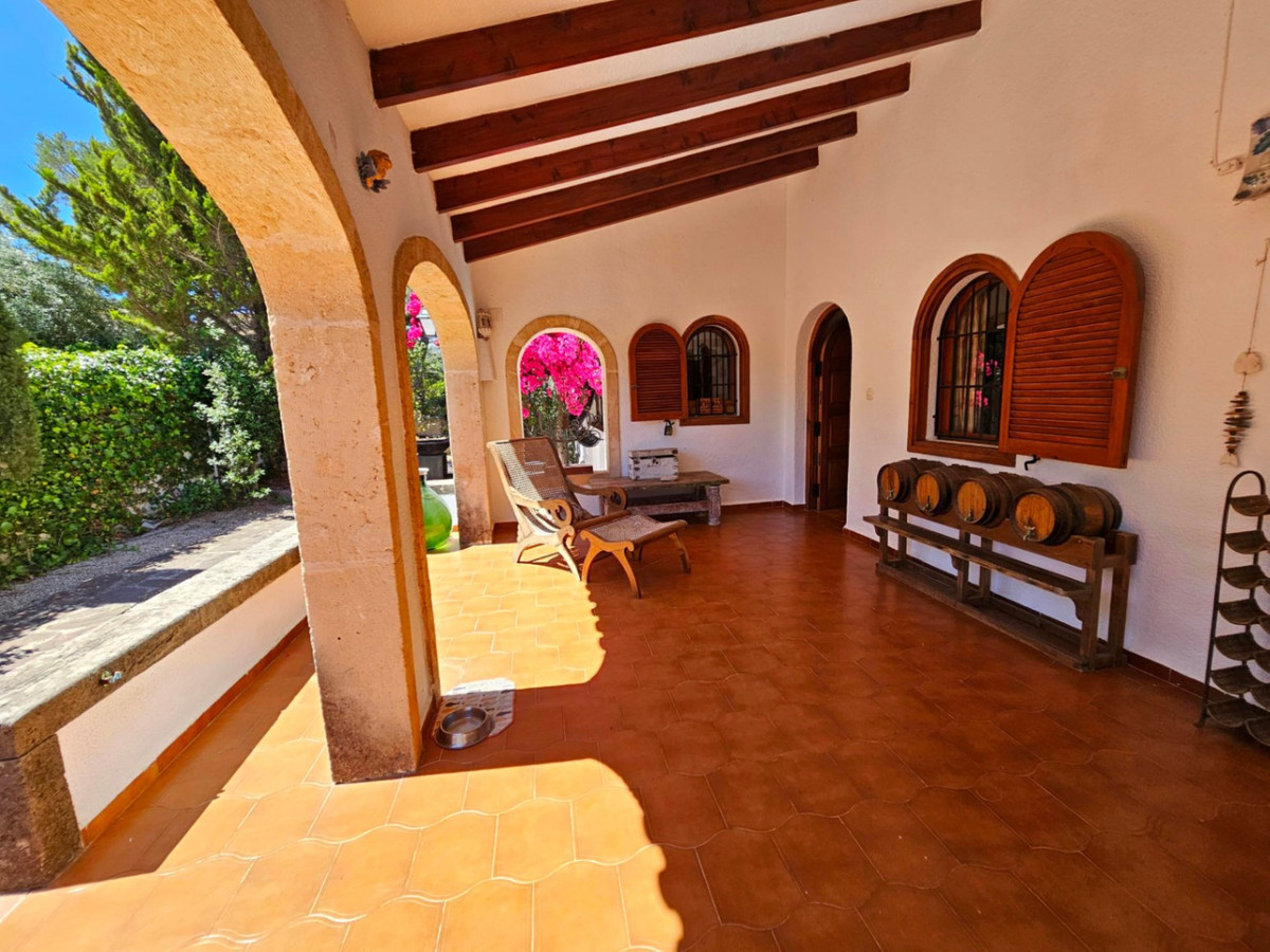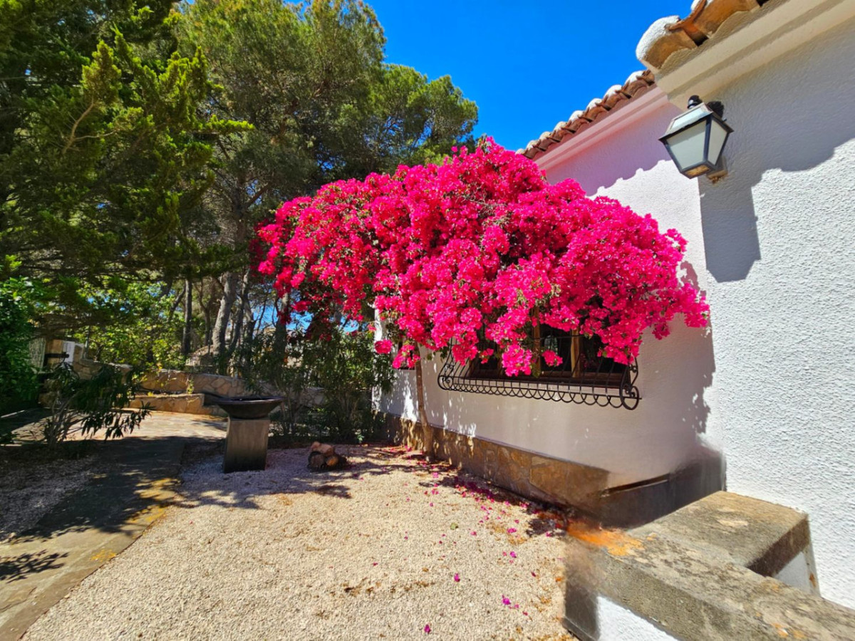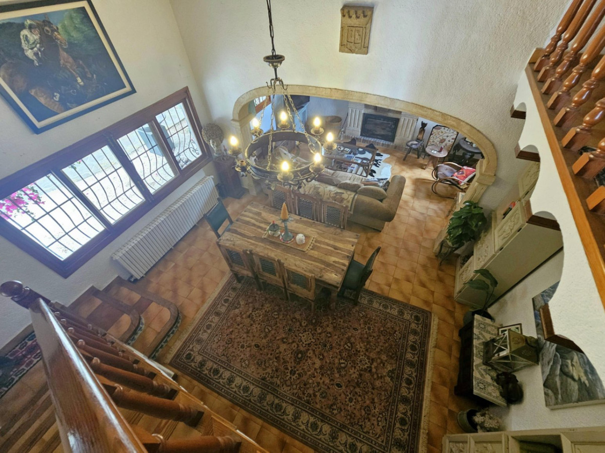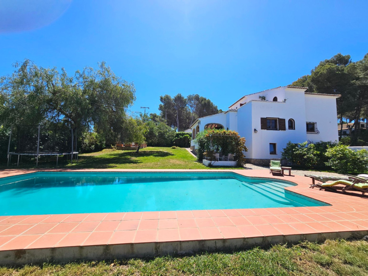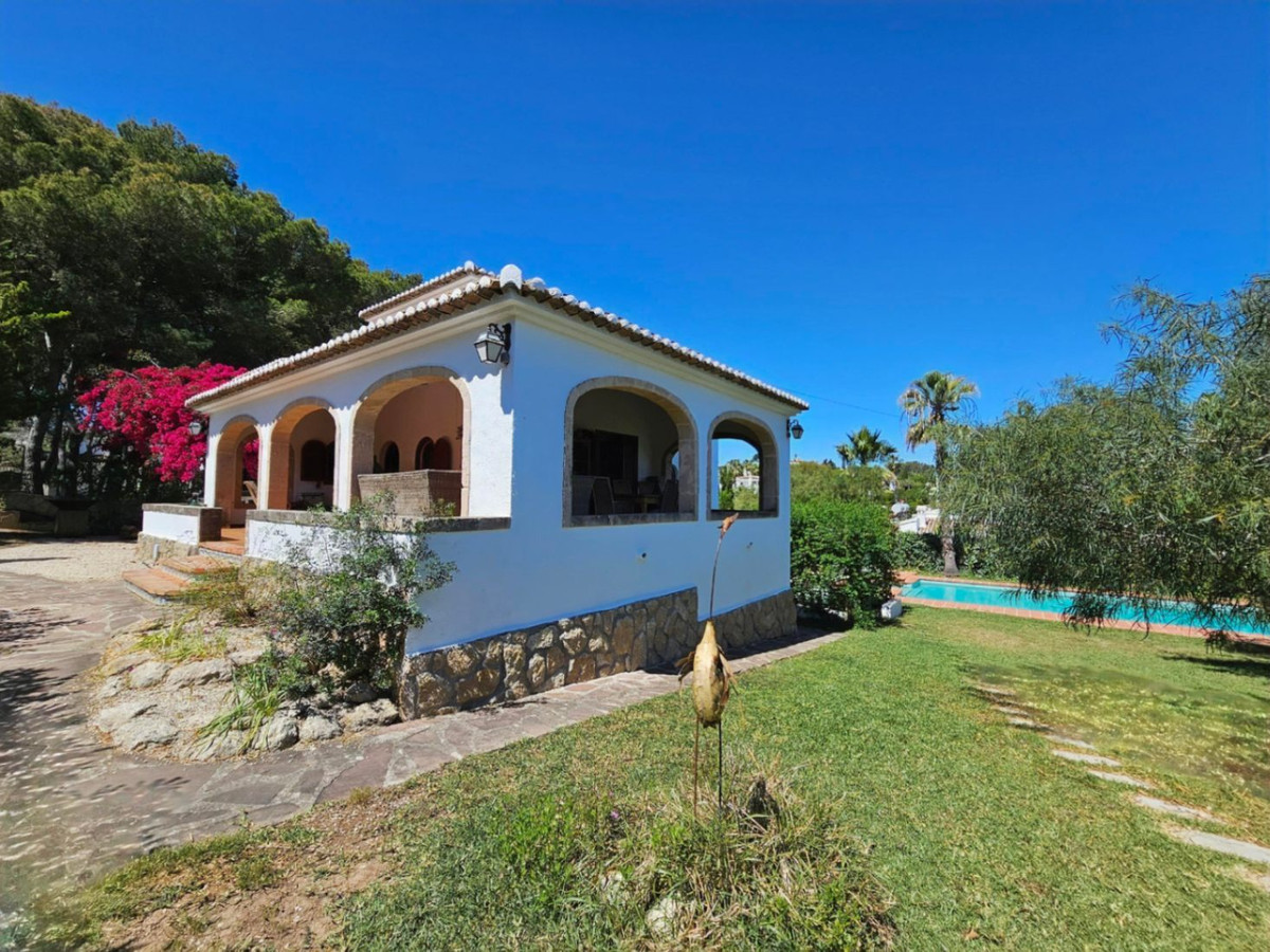 We present to you exclusively this beautiful traditional Villa in Jávea. Upon arriving at the property, we find a private parking area with sufficient space for four cars. Entering the Villa, we are welcomed by a hall that leads to a very spacious living-dining room, with the dining area featuring double-height ceilings. Passing through a beautiful Tosca stone archway, we enter the living room, which has a lovely wood-burning fireplace, also made of Tosca stone, making the space very cozy. The kitchen is a good size, with room for a table and chairs, and is equipped with many natural wood cabinets, providing plenty of storage space, along with a laundry room that makes daily life much easier. Additionally, on this floor, we have a full bathroom. On the upper floor, we find four double bedrooms, with built-in wardrobes and three bathrooms, two of which are en suite, as well as a spacious terrace from the master bedroom, with open views and a glimpse of the sea. The lower floor, accessible from an interior door, features a living-dining room with a small open kitchen, two bedrooms, a fully renovated full bathroom equipped with a shower, and another room that is currently used as storage but could be converted into a gym or another bedroom. The exterior of the Villa is a perfect place to enjoy the good weather, admire the views of Montgó, refresh ourselves in the 10x5 pool, sunbathe on the grass, or enjoy the spacious L-shaped naya with beautiful Tosca stone arches, reading a book, having dinner with family or friends, or simply sitting back and relaxing with a glass of wine. The entire Villa is equipped with diesel heating, wooden windows on the upper part, and tilt-and-turn double-glazed windows on the lower part.